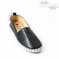Giày mọi nữ da mềm đế cao su êm chân cao 1.5cm màu nâu đen trắng