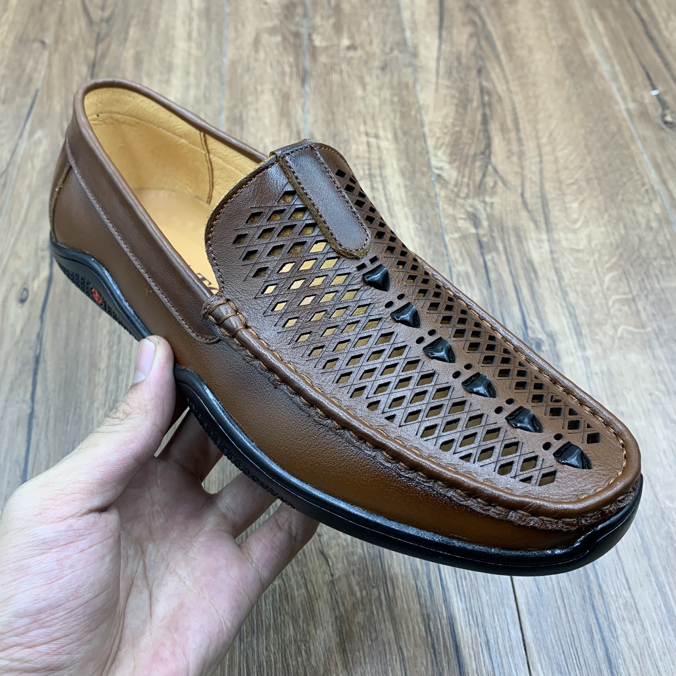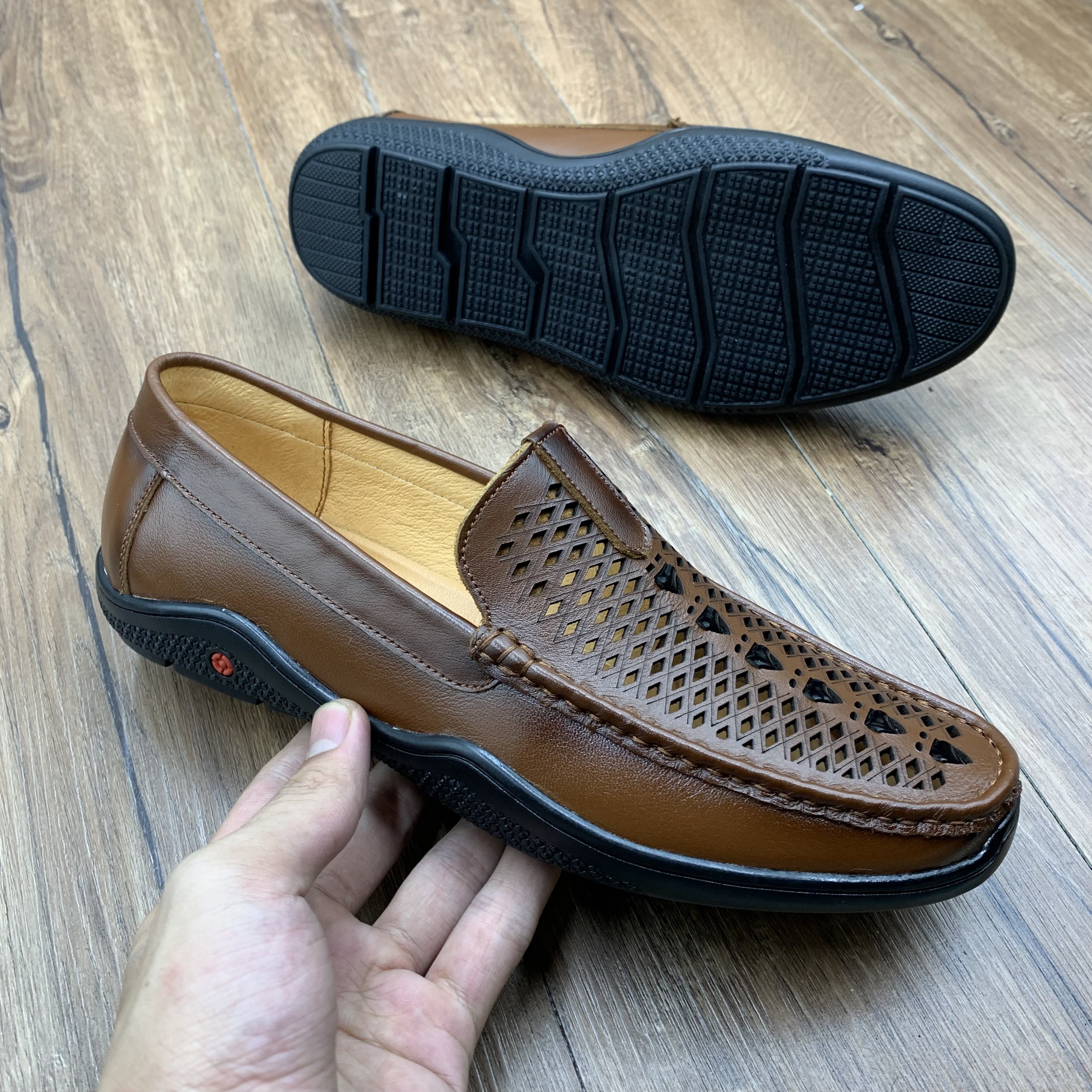 Giày lười nam giày mọi nam da bò thật đục lỗ thoáng khí