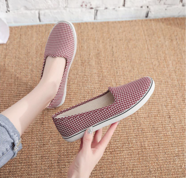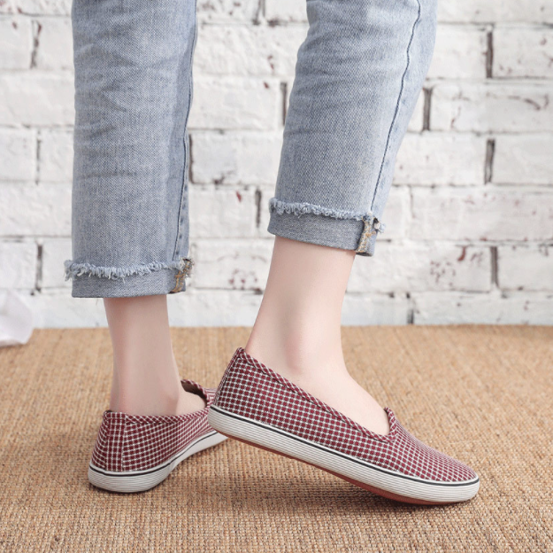 Giày lười vải nữ caro êm chân thời trang mới nhất V299