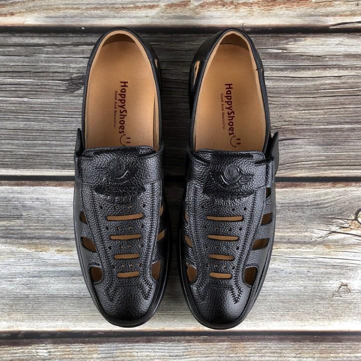 Chất liệu: Da bò tấm, bản da dầy, cắt ngang có lỗ chân lông tự nhiên. Gót giày bo da lộn mềm, thoải mái không bị sát gót chân.