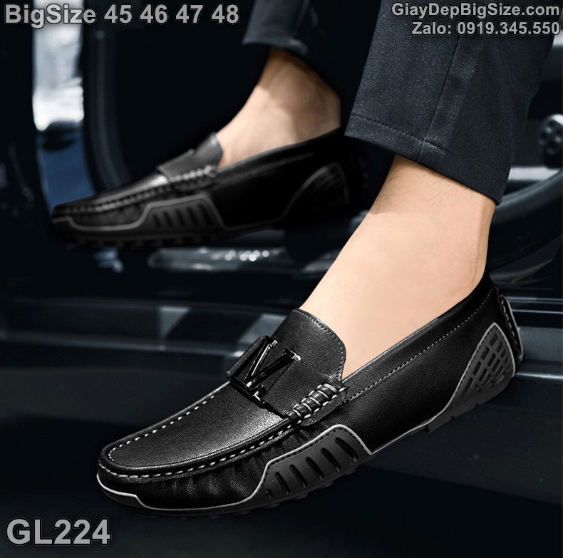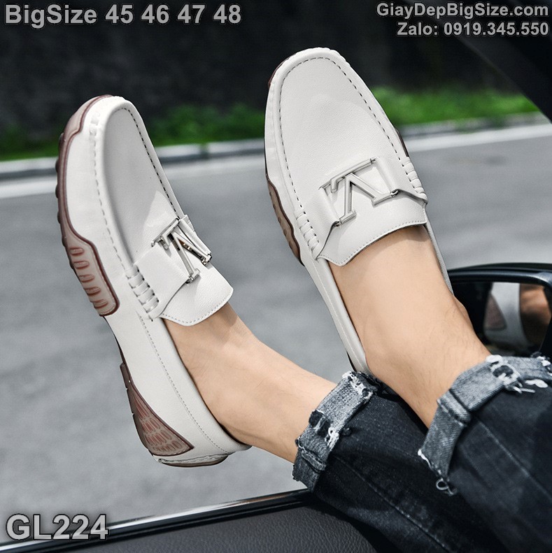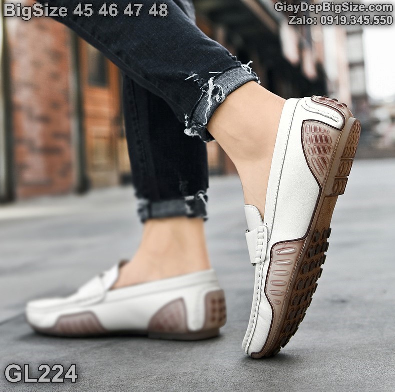 Giày mọi xỏ da thật, giày lười big size cỡ lớn 45 46 47 48 cho nam cao to chân ú bè