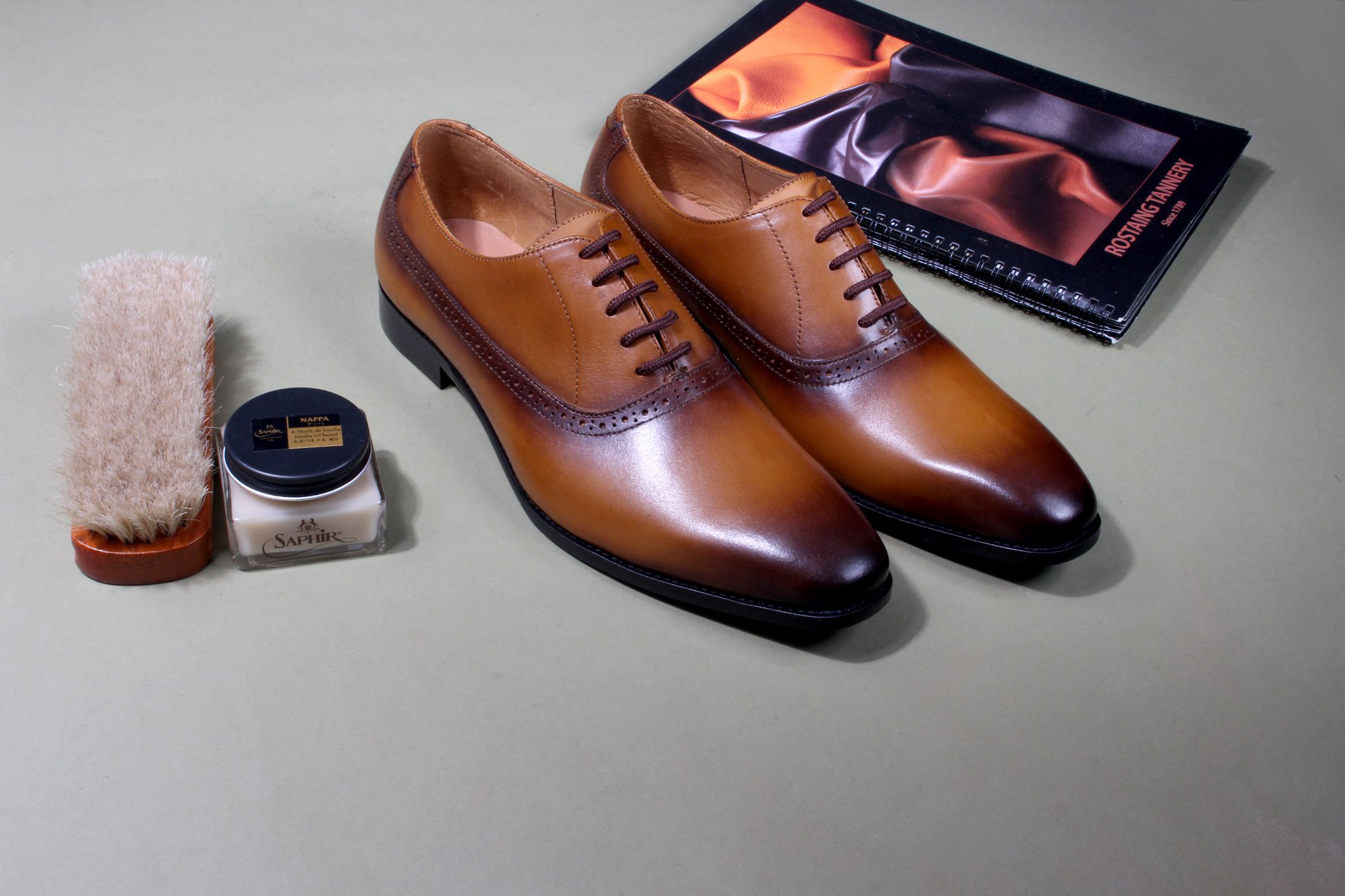 Mũ giày: Da bò Veg-Tan (Da Ý)