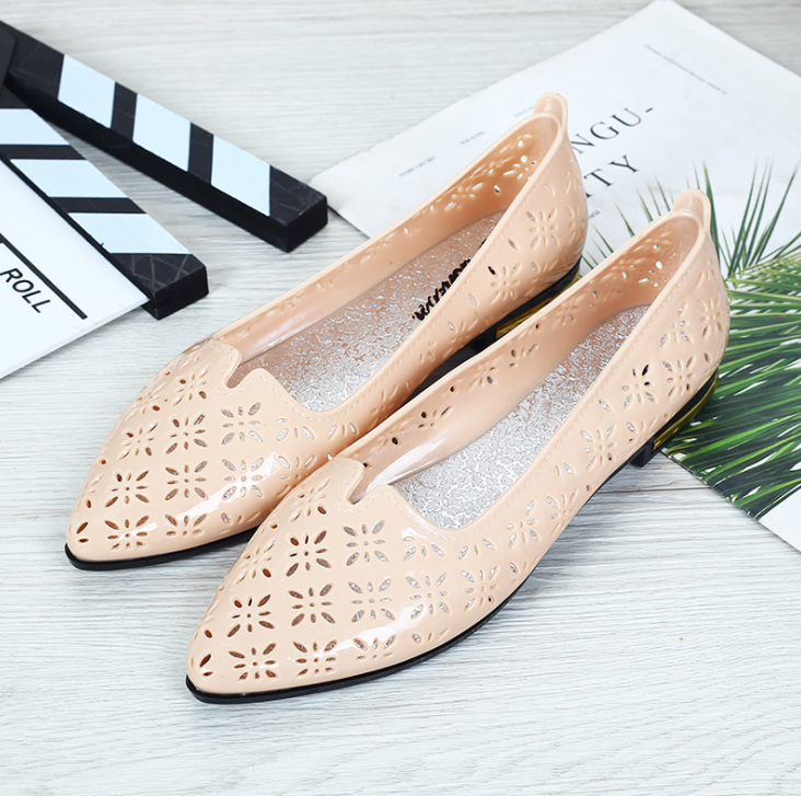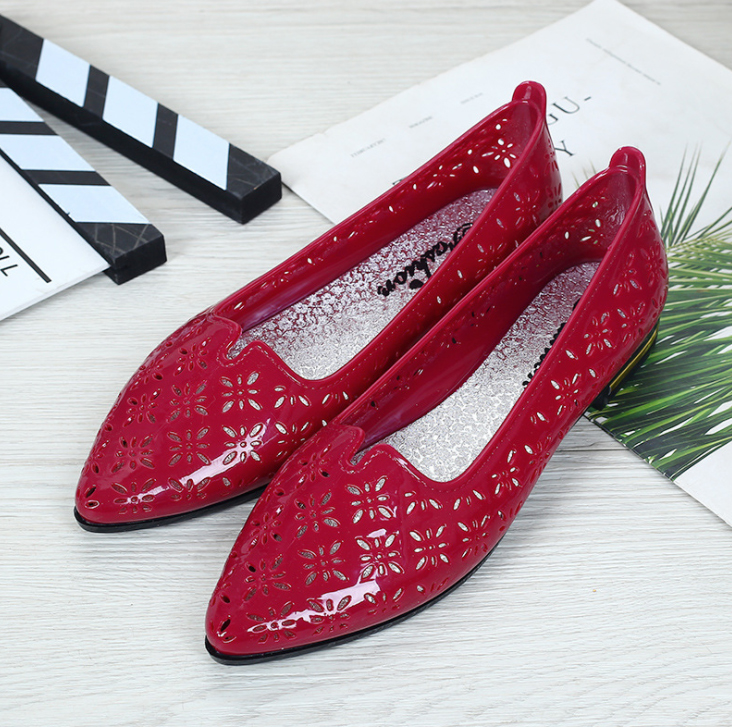 Giầy nhựa bóng họa tiết thoáng chân chịu nước, giầy đi mưa, đi biển và dạo phố Giày búp bê nữ đi mưa,nhựa dẻo mũi nhọn sang trọng,hoa văn đang chéoThiết kế độc đáo, Kiểu dáng mới lạChất liệu ...