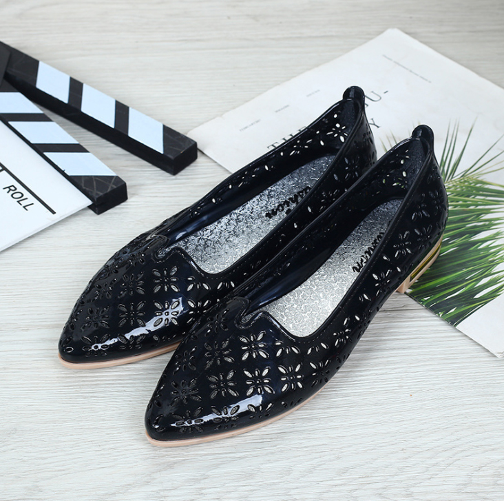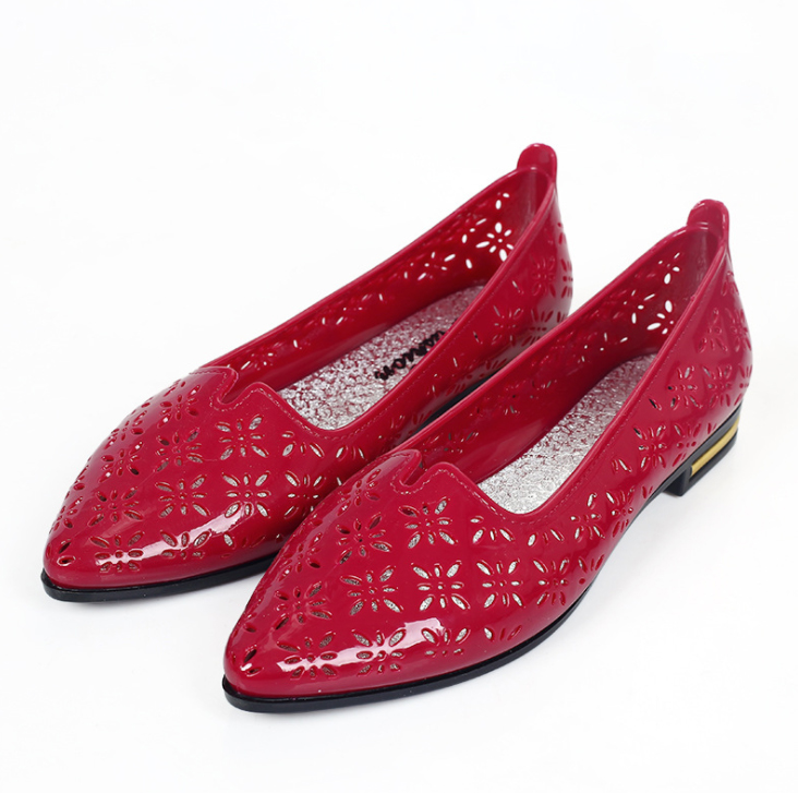 Giầy nhựa bóng họa tiết thoáng chân chịu nước, giầy đi mưa, đi biển và dạo phố Giày búp bê nữ đi mưa,nhựa dẻo mũi nhọn sang trọng,hoa văn đang chéo Thiết kế độc đáo, Kiểu dáng mới lạ Chất liệu cao cấp, Dễ dàng phối đồ