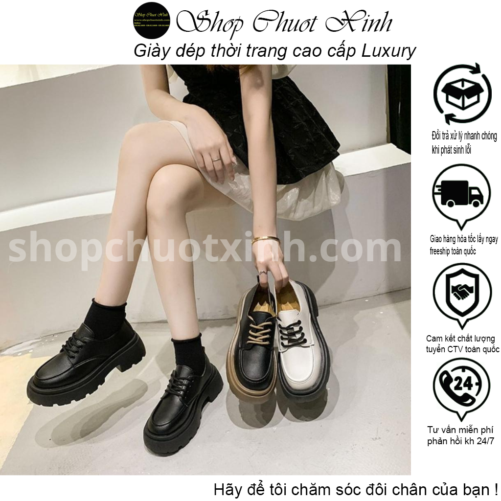 Giày nữ, giày da nữ cổ thấp đế độn giầy thời trang