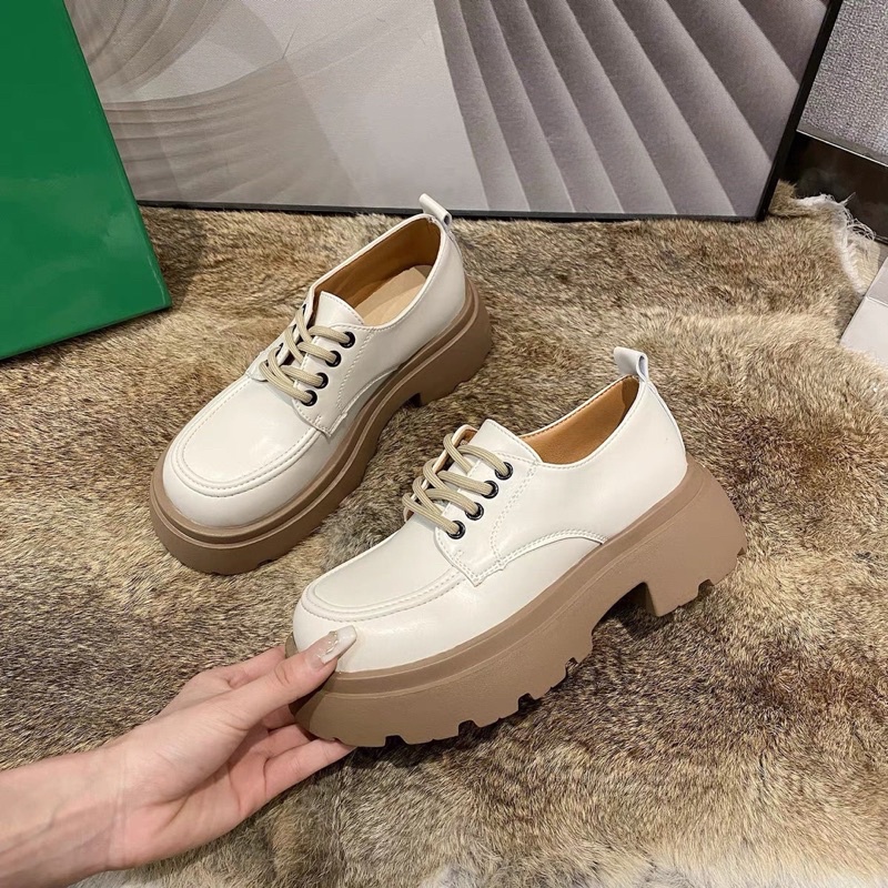 Giày nữ da cổ thấp đế độn 4cm ba màu đen full, đen nâu, trắng nâu ban trung full size nữ hàng quảng châu shopchuotxinh