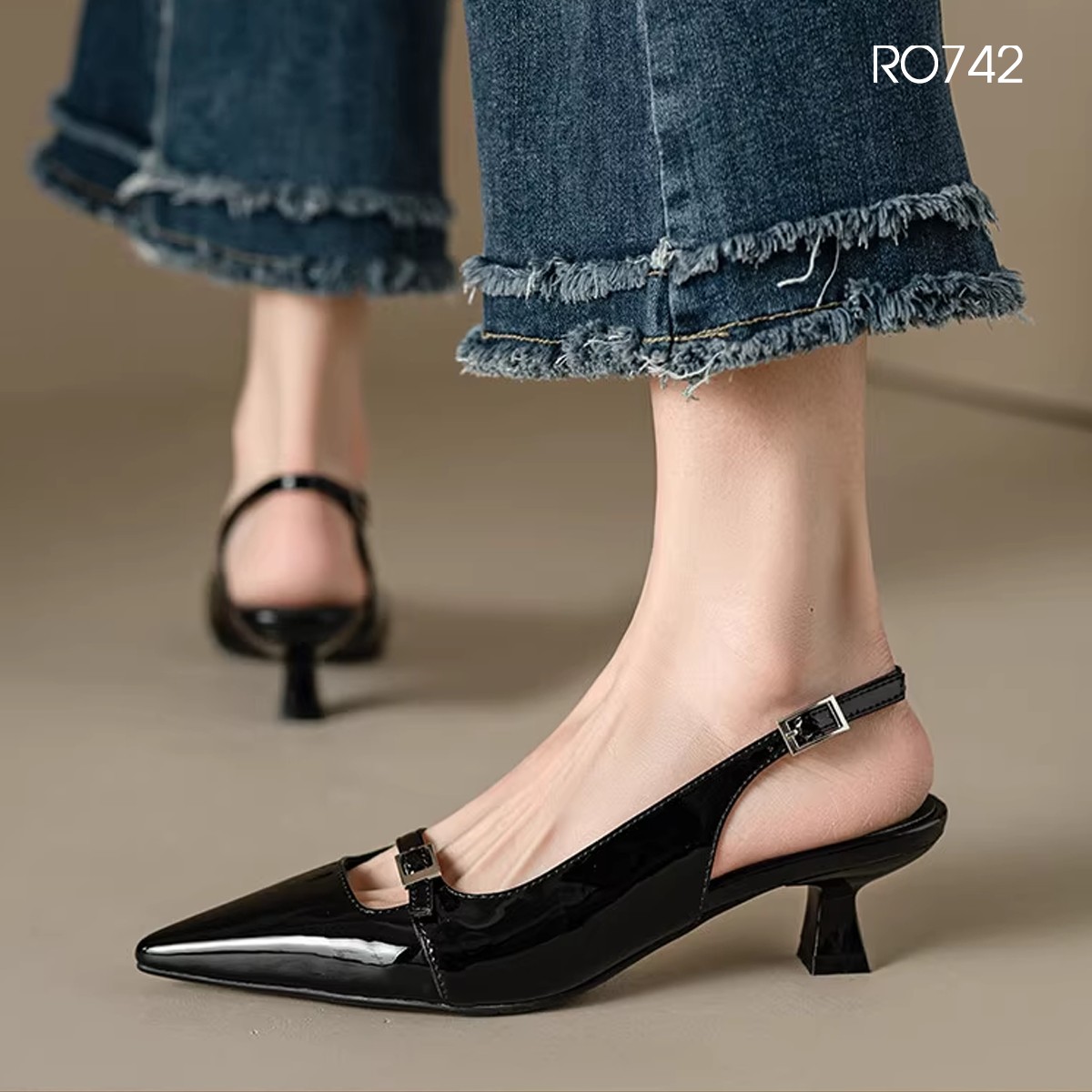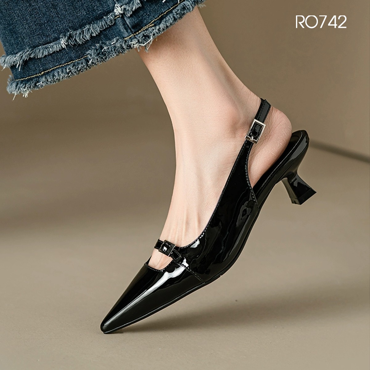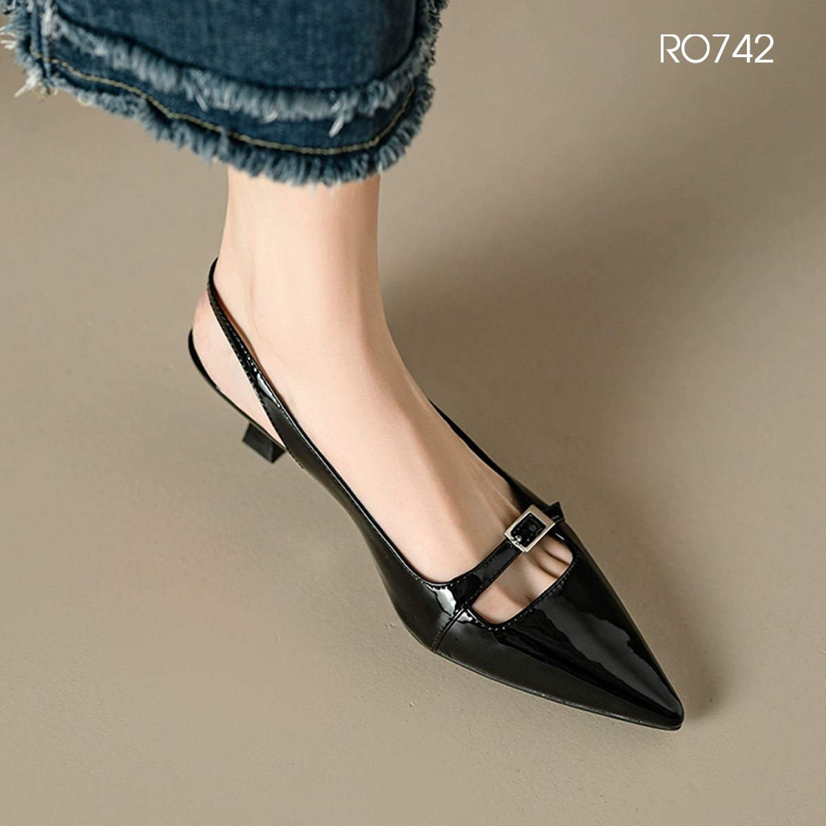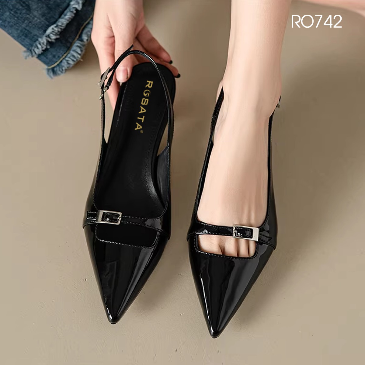 MÔ TẢ SẢN PHẨM: Giày nữ mũi nhọn, quai sau ROSATA RO742 - 4p - Đen, Kem - BKSTORE