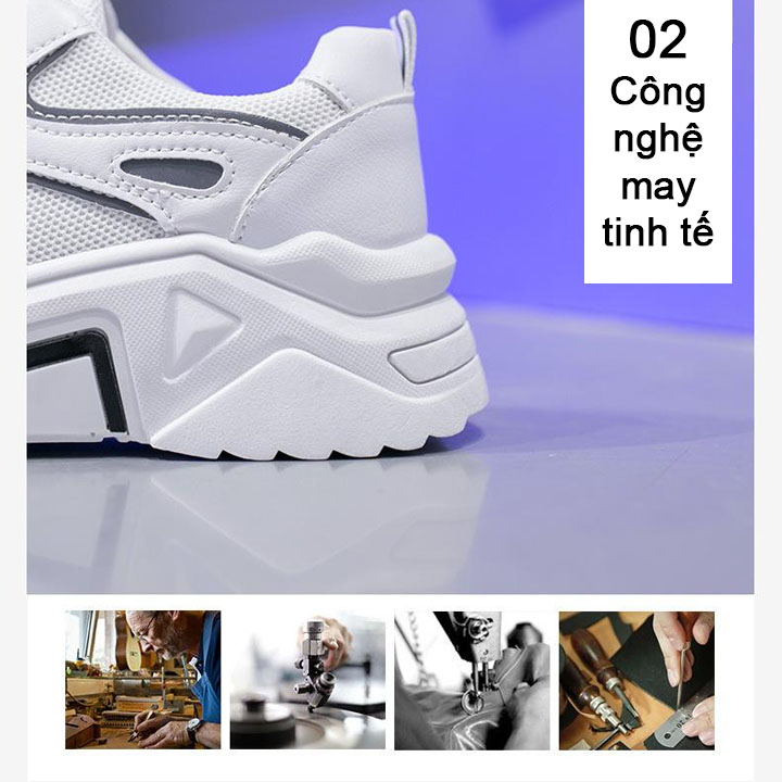 Phần trong giày thấu khí thân thiện với làn da Bên trong giày áp dụng công nghệ may thấu khí, mang đến sự tiếp xúc mềm mại, tinh tế, giúp đôi chân bạn luôn khô thoáng, miếng lót giày mềm mại, thoải mái giúp đôi chân bạn luôn được bảo vệ.