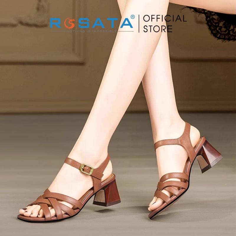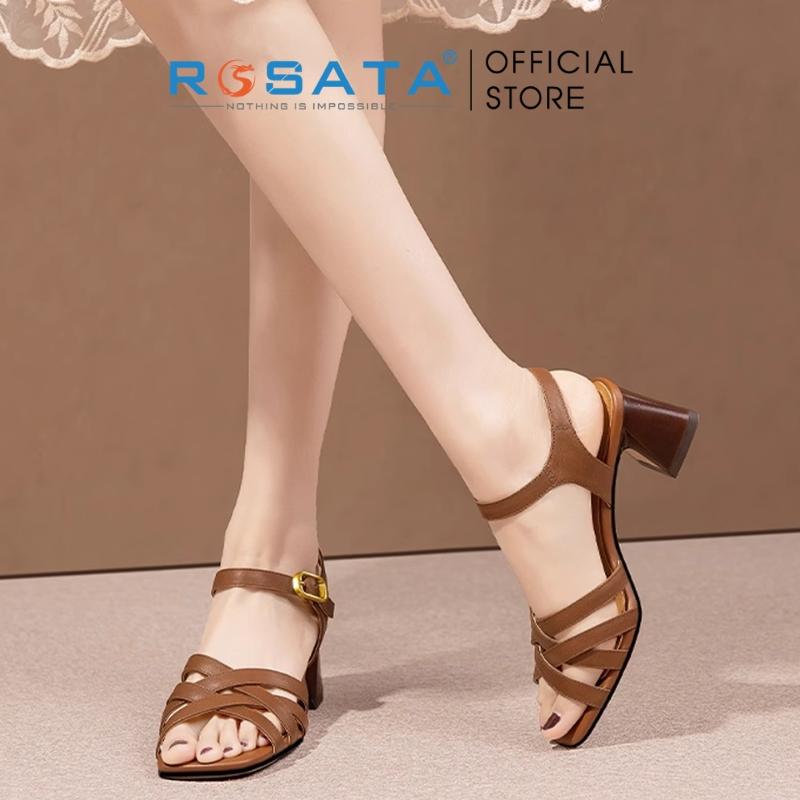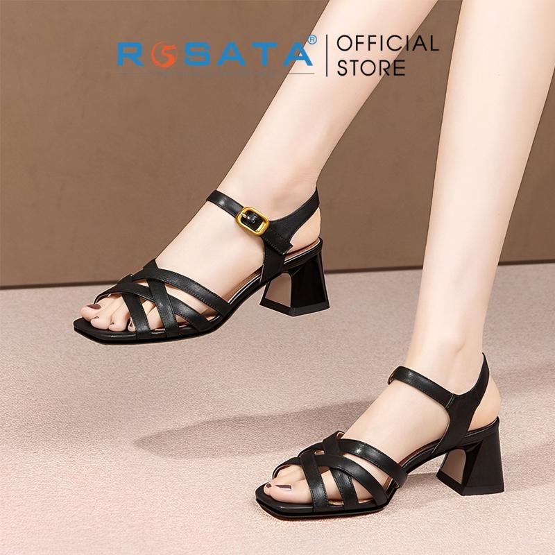 Tên sản phẩm: Giày sandal cao gót nữ ROSATA RO584 xỏ ngón phối dây mũi tròn quai hậu khóa cài dây mảnh gót vuông cao 5cm