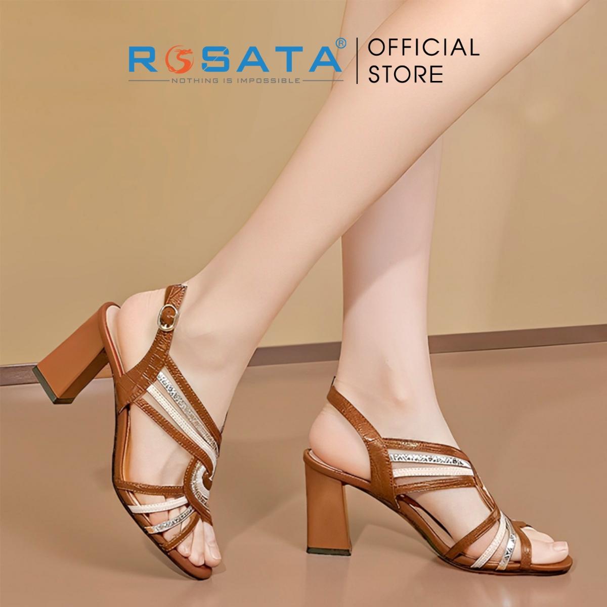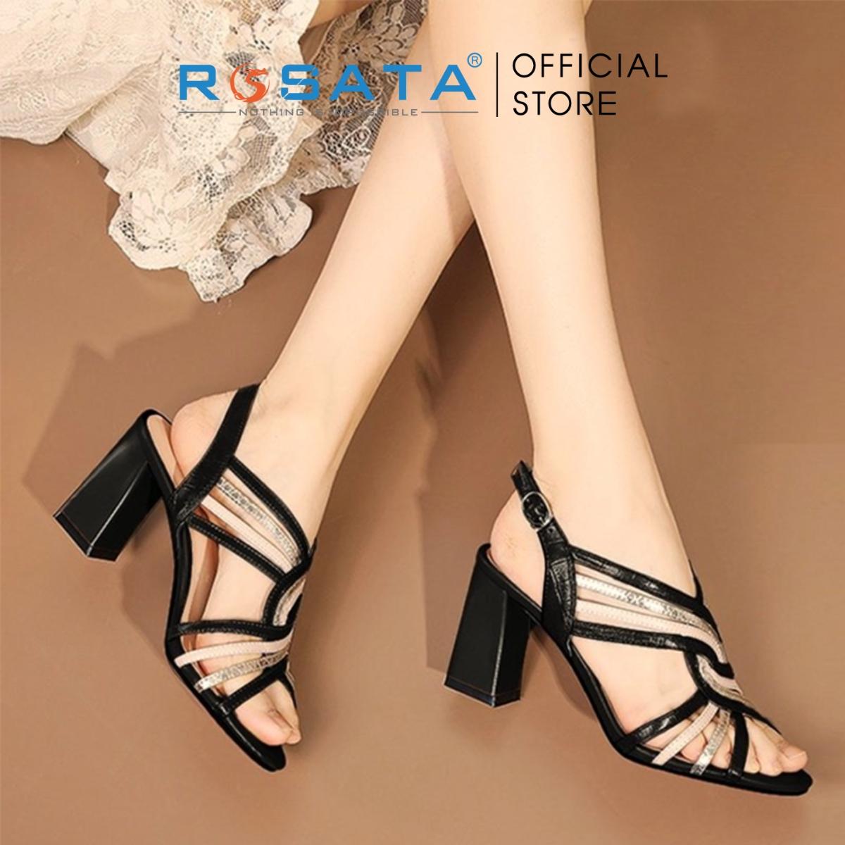 Tên sản phẩm: Giày sandal cao gót nữ ROSATA RO449 phối dây mũi tròn quai hậu cài khóa kiểu basic hàn quốc gót cao 7cm xuất xứ Việt Nam