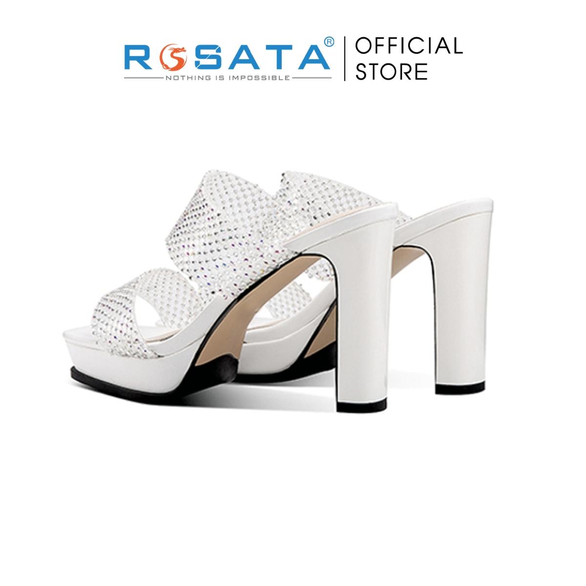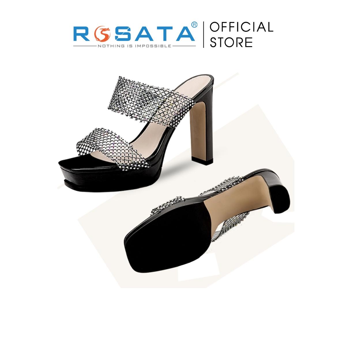 Tên sản phẩm: Giày sandal cao gót nữ ROSATA RO507 xỏ ngón mũi vuông quai ngang lưới gót nhọn cao 8cm xuất xứ Việt Nam