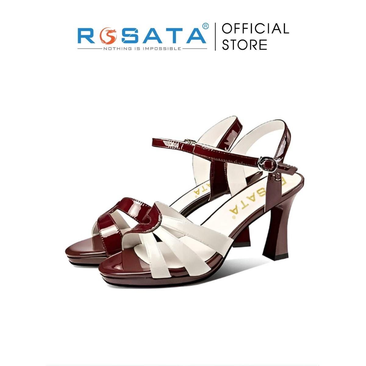 Tên sản phẩm: Giày sandal cao gót nữ ROSATA RO521 phối dây mũi tròn quai cài hậu mảnh gót nhọn cao 7cm xuất xứ Việt Nam