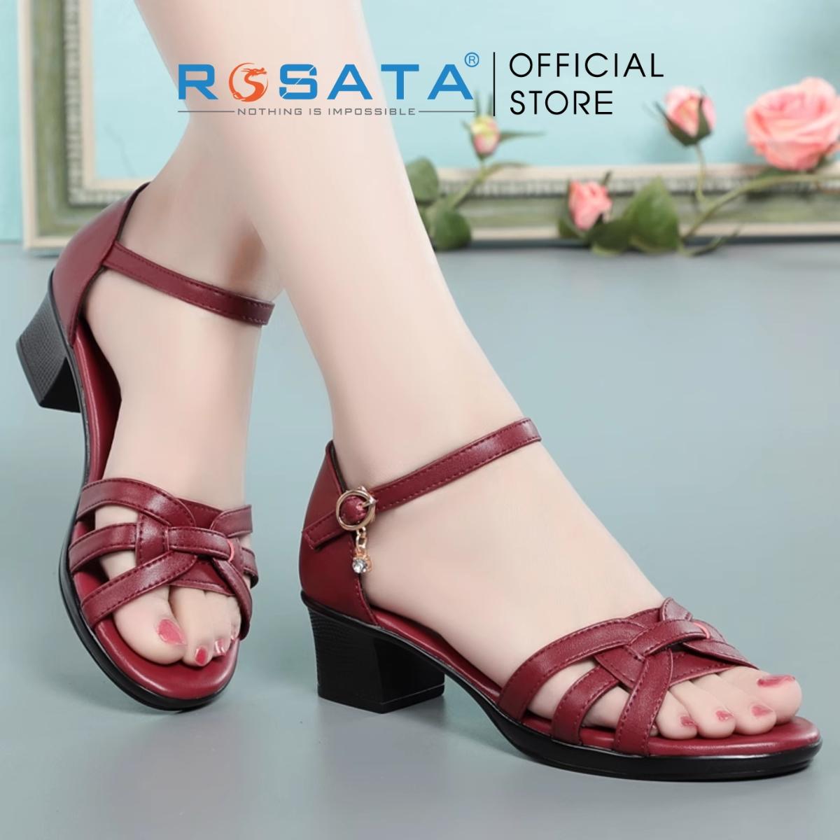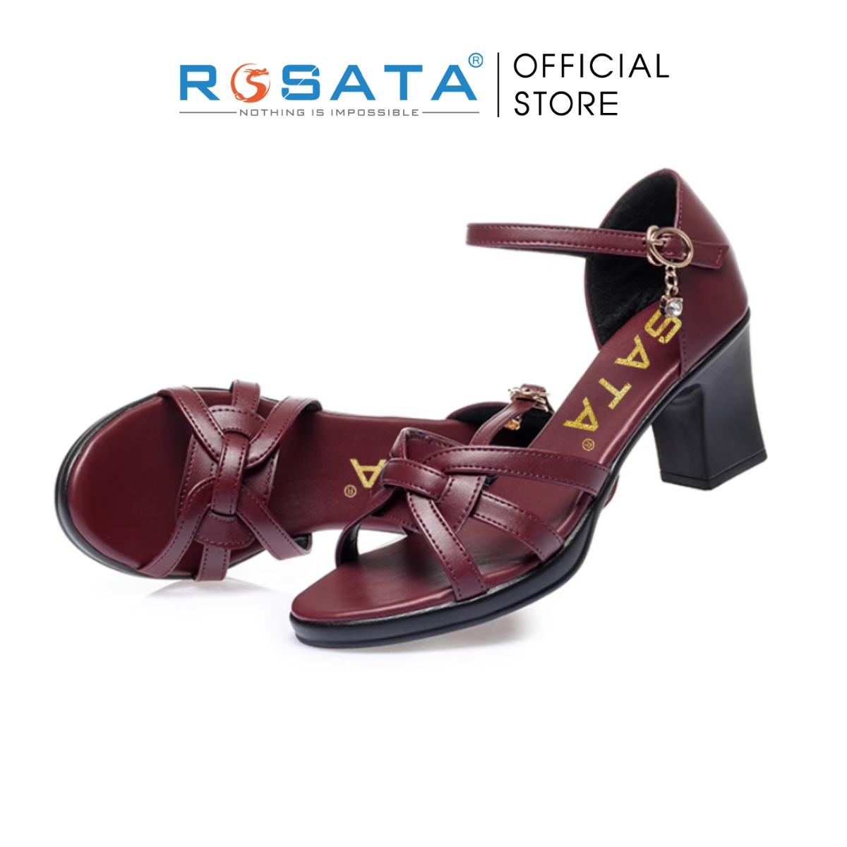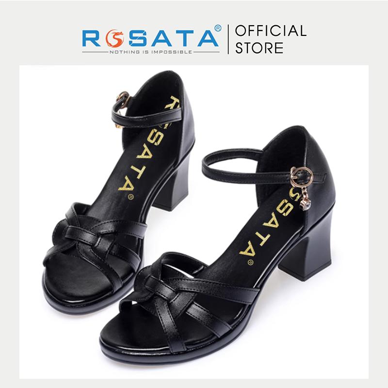 Tên sản phẩm: Giày sandal cao gót nữ ROSATA RO450 xỏ ngón phối dây mũi tròn quai cài mảnh gót vuông cao 7cm xuất xứ Việt Nam