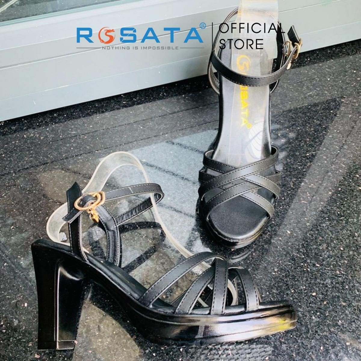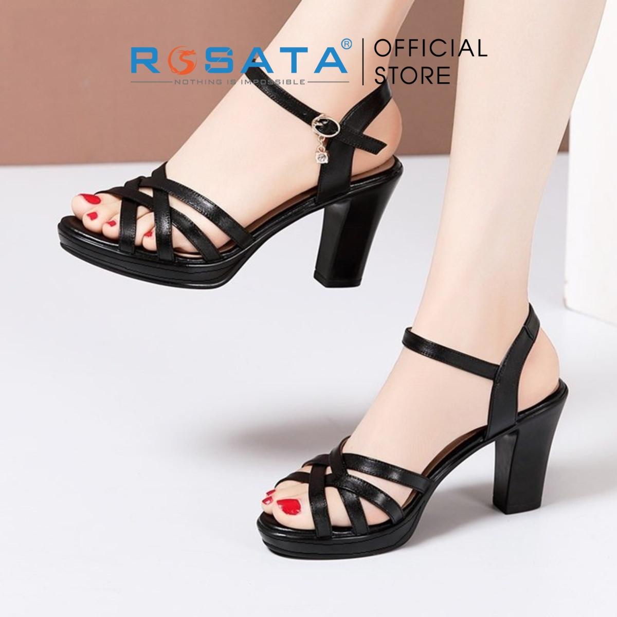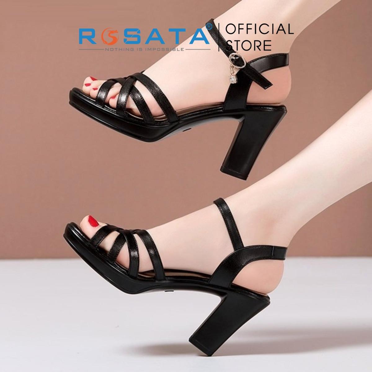 Tên sản phẩm: Giày sandal cao gót nữ ROSATA RO387 xỏ ngón mũi tròn phối dây mảnh quai hậu cài khóa gót cao 8cm xuất xứ Việt Nam
