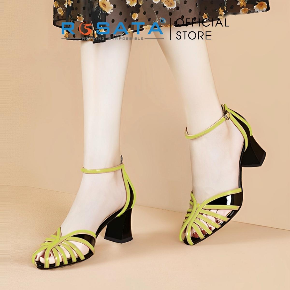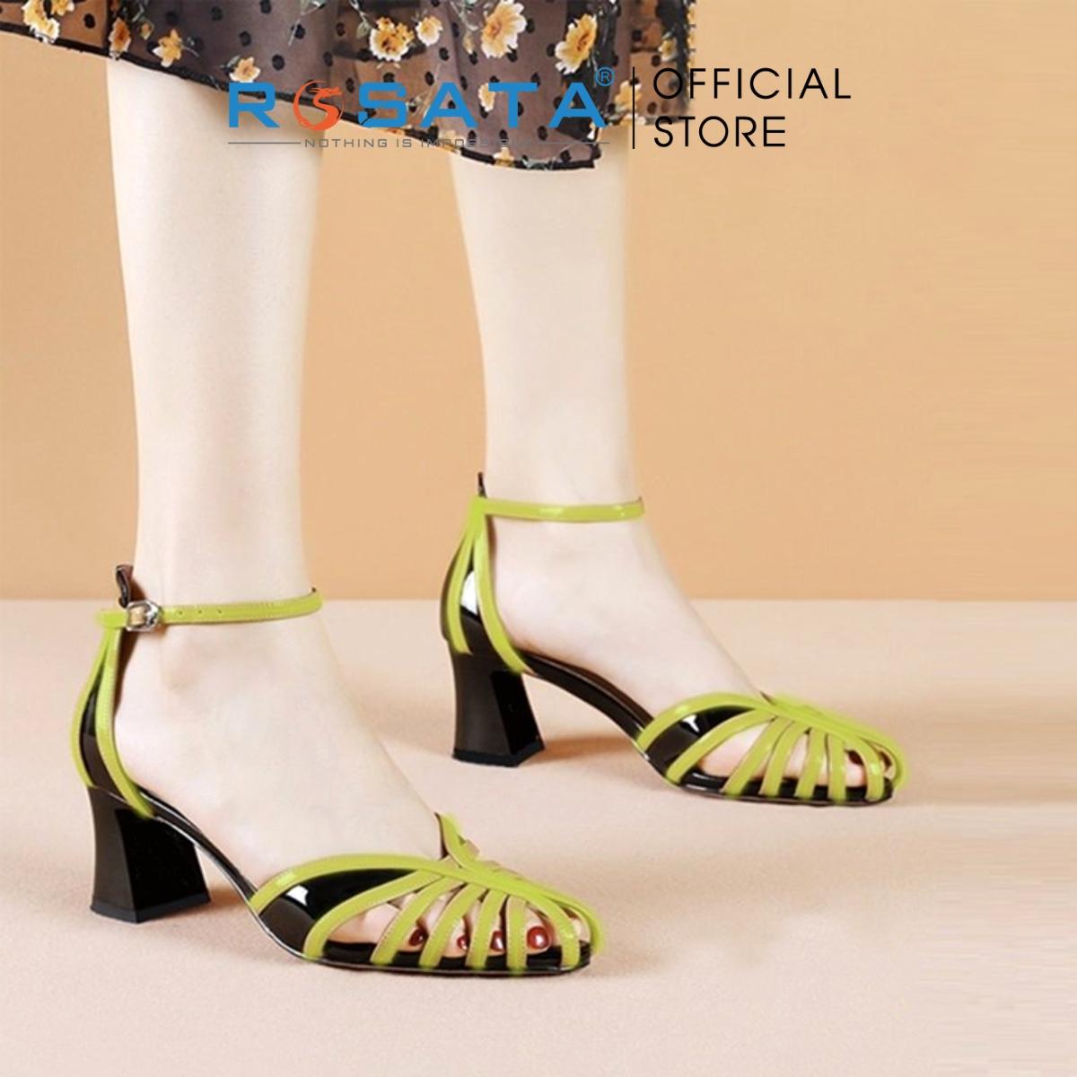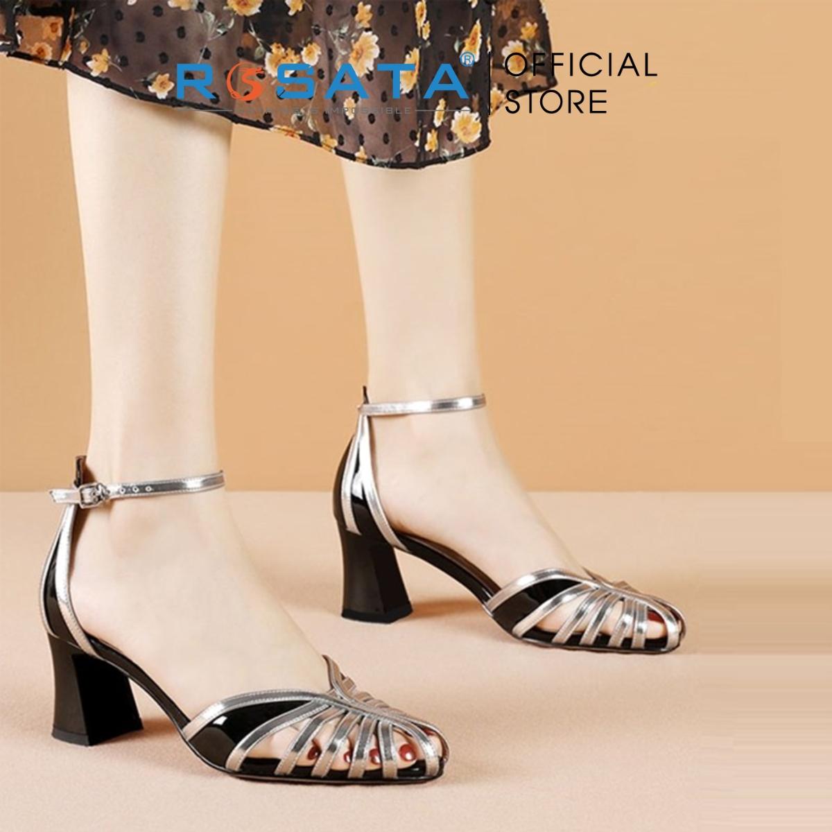Tên sản phẩm: Giày sandal cao gót nữ ROSATA RO415 phối dây mũi nhọn quai hậu cài khóa cổ chân dây mảnh gót cao 7cm xuất xứ Việt Nam