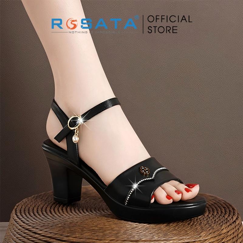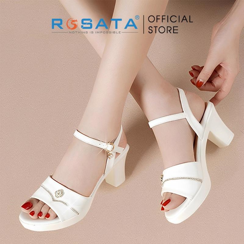 Tên sản phẩm: Giày sandal cao gót nữ ROSATA RO580 xỏ ngón mũi tròn quai hậu cài khóa gót cao 7cm xuất xứ Việt Nam