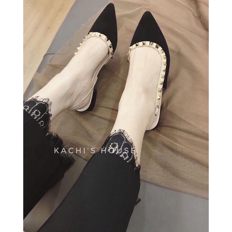 Giới thiệu Giày sandal da lộn viền đinh mũi nhọn hở gót đi học đi làm siêu xinh