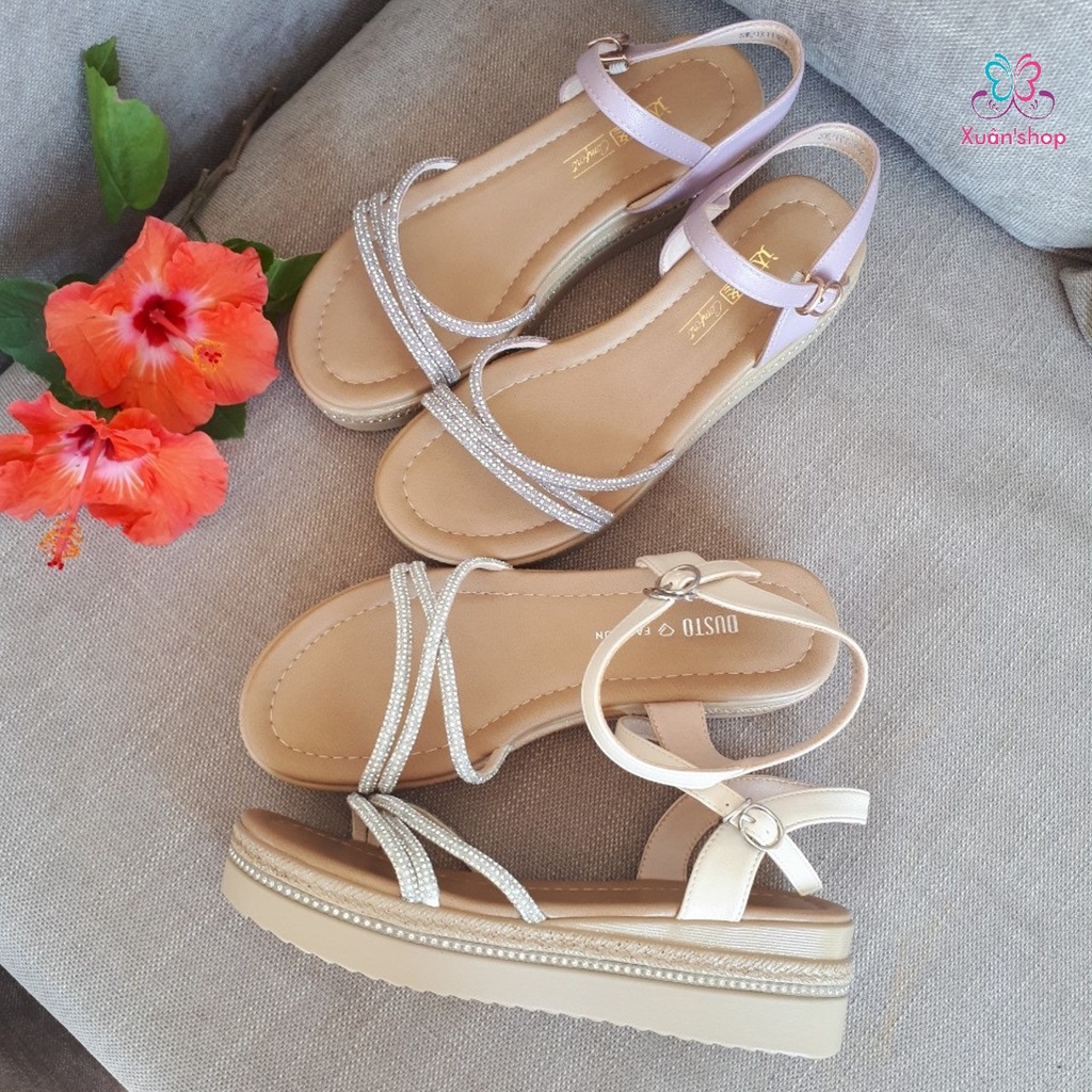 Giới thiệu Giày sandal Dusto quai chéo phủ ánh kim, đế xuồng cao 4.5cm (size 37, 39)