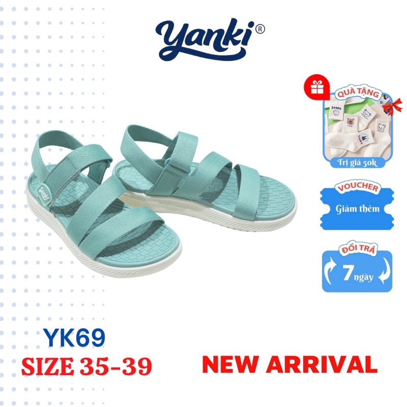 MÔ TẢ SẢN PHẨM: - Tên sản phẩm: Giày Sandal Nữ YANKI Chính Hãng Quai Ngang YK68 - Đế trên nhiều rãnh thoáng khí, thiết kế lượn sóng giúp ôm gọn và Massage lòng bàn chân. - Đế giày ép Phylon chất liệu siêu nhẹ, mang đến độ êm ái cho đôi bàn chân. - Đế Phylon cao gấp 3 lần sandals thông thường, cải thiện độ cao tối ưu, đặc biệt không xẹp và lâu mòn. - Quai dù êm ái không đau và hôi chân. Mau khô ráo khi đi thời tiết mưa. - Dán xé cao cấp theo công nghệ Nhật Bản, độ bám dính 20.000 lần. - Đế cao: 3 cm.