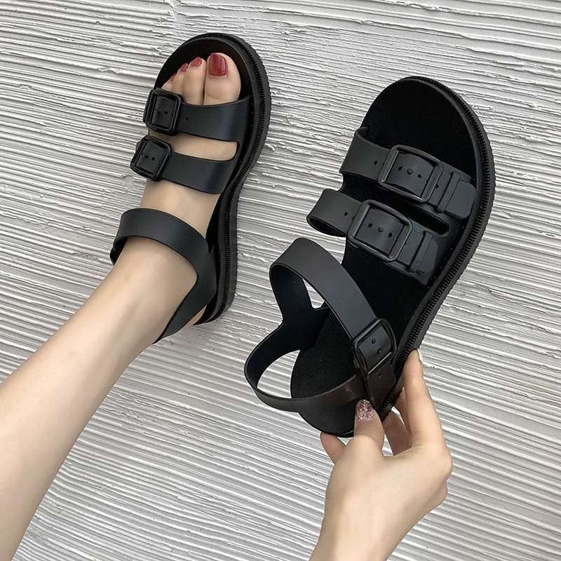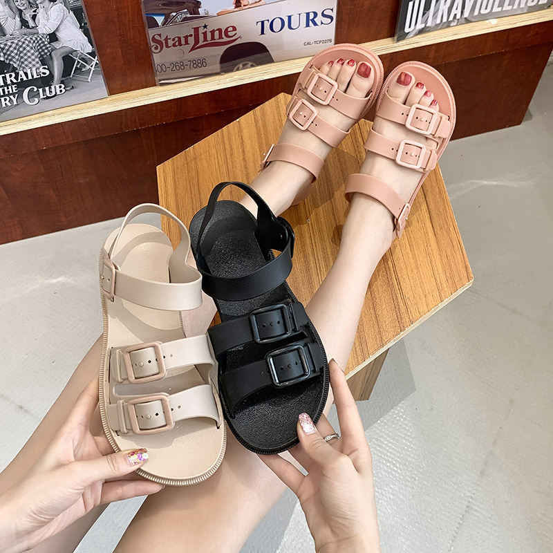 Giày Sandal nữ quai hậu có khuy cài chống nước cao su nhựa dẻo siêu bền phong cách hàn quốc học sinh đế bằng trống trơn trượt Jayshop V326