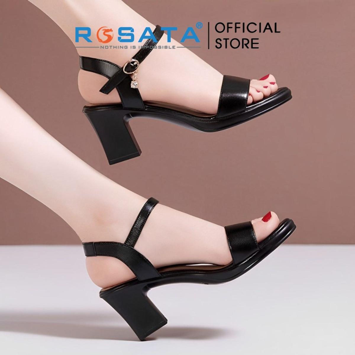 Tên sản phẩm: Giày sandal nữ ROSATA RO576 đế vuông cao gót 5 phân mũi tròn quai hậu cài khóa dây mảnh xuất xứ Việt Nam