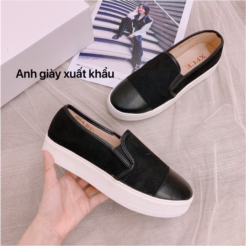 Giày Dép Nữ > Giày đế bằng > Giày sục & Giày búp bê || TT25 - Giày slipon da lộn pha da lì đế bánh mì siêu êm(ảnh thật kèm video)