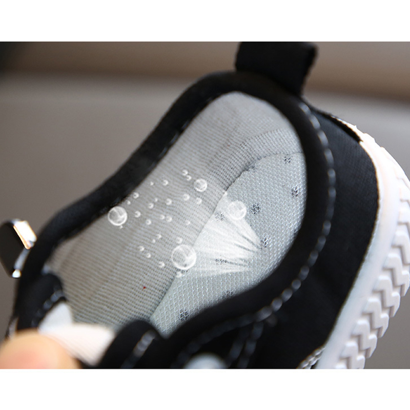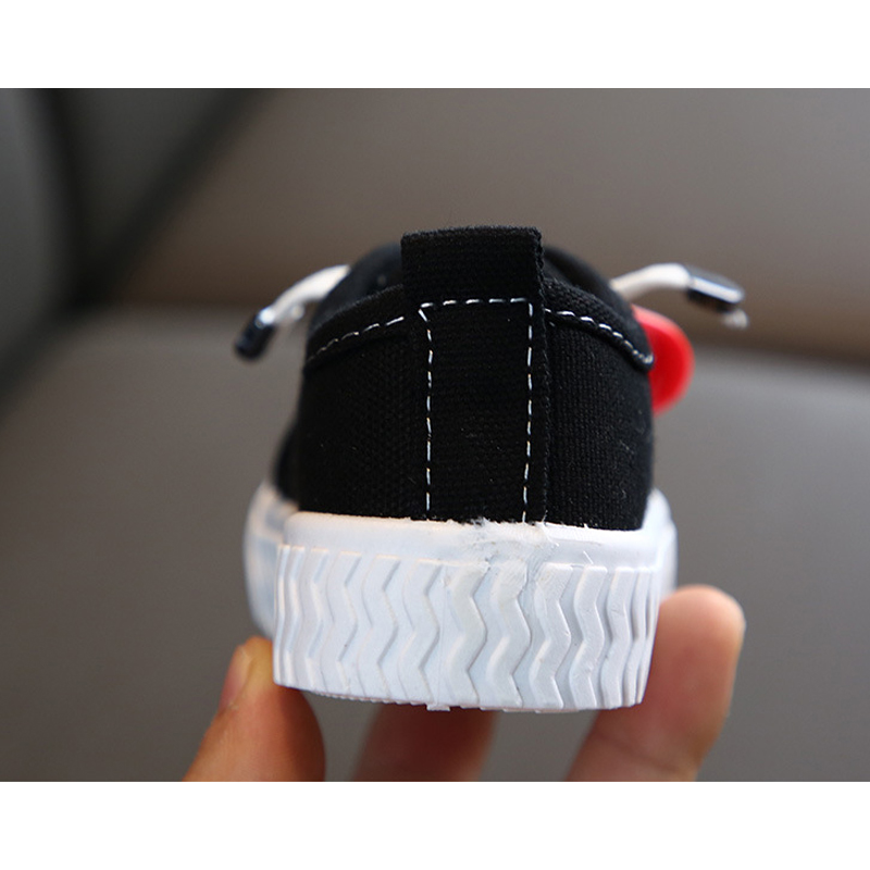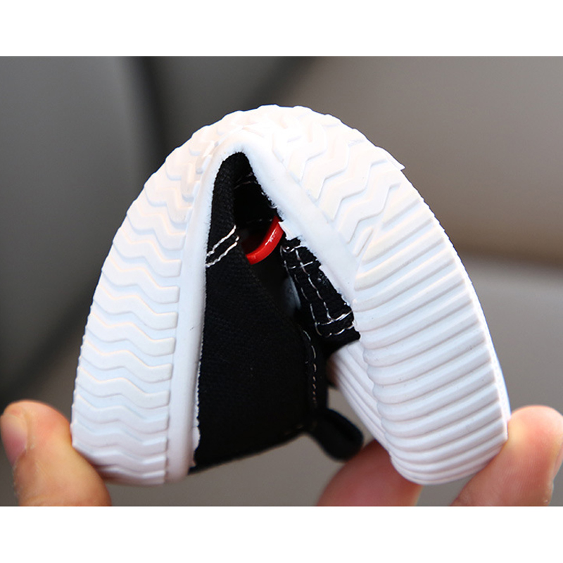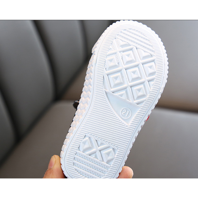 2.Chất liệu: phần trên của đôi giày được làm từ chất liệu vải cao cấp, mềm mại, giúp cho bé có có cảm giác dễ chịu. Thêm vào đó là phần đế giày được làm từ cao su với độ bền cao giúp tăng độ ma sát cũng như sự chắc chắn cho đôi giày. Với thiết kế phối màu dễ thương, có thể kết hợp được với nhiều trang phục khác nhau để tạo cho bé 1 set đồ đẹp khi đi chơi