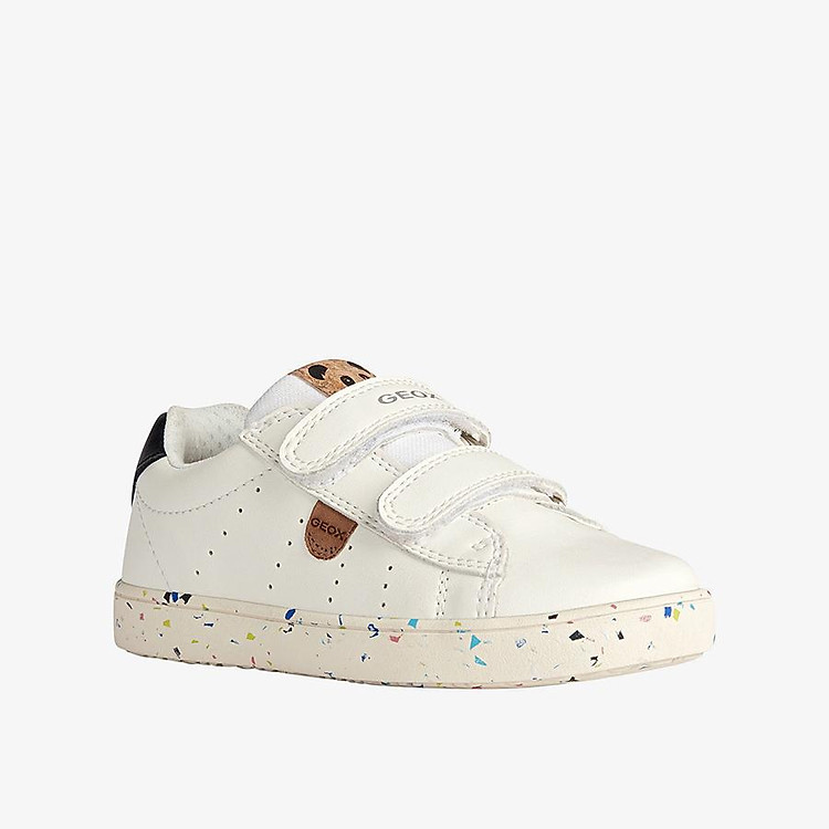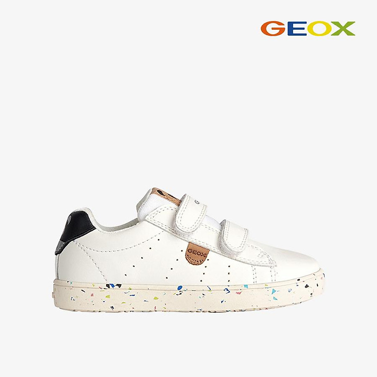 • Đôi giày thể thao cổ thấp dành cho các thanh thiếu niên. Là sản phẩm hợp tác giữa Geox và WWF, phong cách giản dị nhưng không kém phần năng động cho các bạn nhỏ. Phiên bản màu trắng của Kathe này có lớp đệm êm ái và chắc chắn được làm từ da tái chế. Với kiểu dáng năng động mang phong cách quần vợt - thiết kế dây buộc dạng dán vô cùng thuận tiện, linh hoạt, thoải mái, phù hợp cho các bạn trẻ đi học, đi chơi hoặc đi dạo phố.