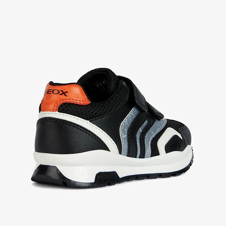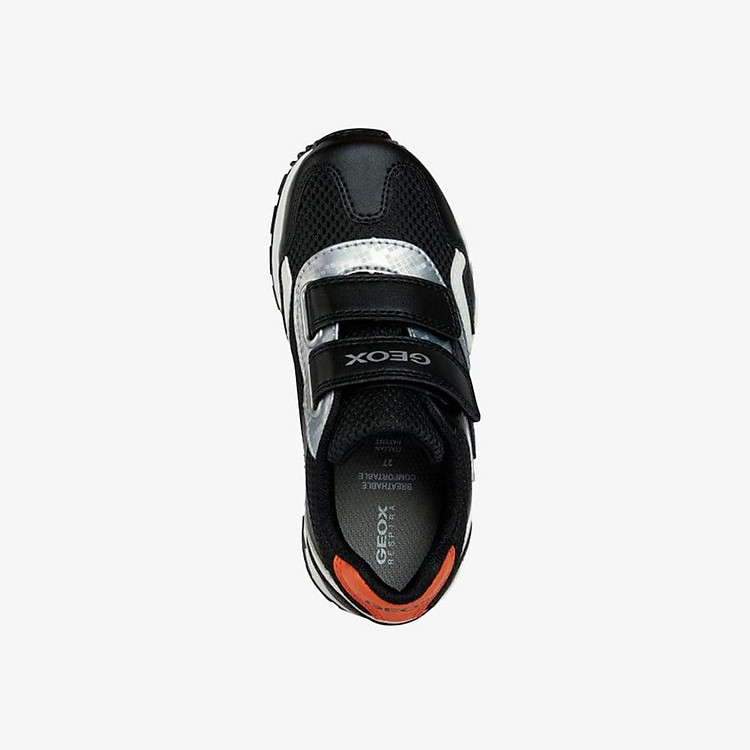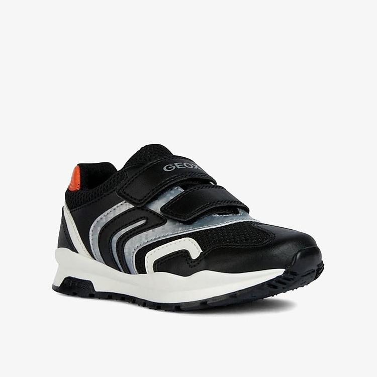 "Giày thể thao cho bé trai với thiết kế kiểu giày chạy bộ cổ điển và phong cách thể thao năng động. Được chế tác từ sự kết hợp giữa chất liệu da lộn và in họa tiết trên một bảng màu đen, cùng các chi tiết đen và bạc tương phản, phù hợp cho trẻ khi đi học và vui chơi ngoài trời. Đôi giày dễ dàng đặt chân vào và điều chỉnh trong quá trình sử dụng, là sự kết hợp hoàn hảo giữa đệm, hỗ trợ và sự thoải mái.