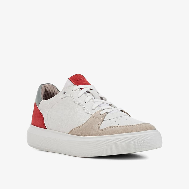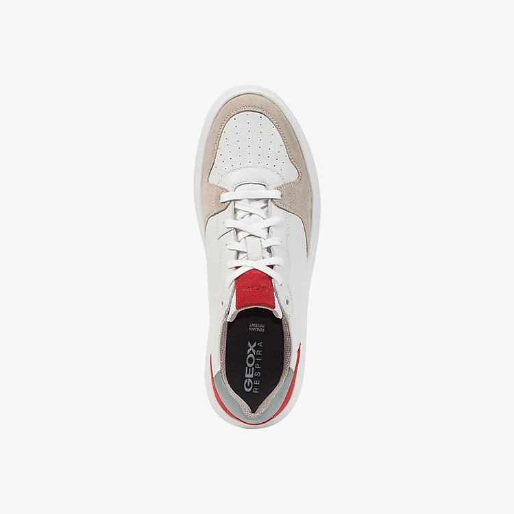• Phần trên được làm bằng da bò nguyên bản, cùng với lộn. Lớp lót bên trong được làm từ vải dệt. Nhờ có lớp lót dệt và đế đệm, bạn sẽ có cảm giác thoải mái tối ưu khi mang. Đế có độ bám cao, chống trơn trượt tốt cho mọi bề mặt. Bàn chân được thông thoáng tối ưu nhờ đế đục lỗ. Lớp màng được làm từ công nghệ “Giày Biết Thở của Geox” đặc biệt bên trong khiến nước không thể xâm nhập.