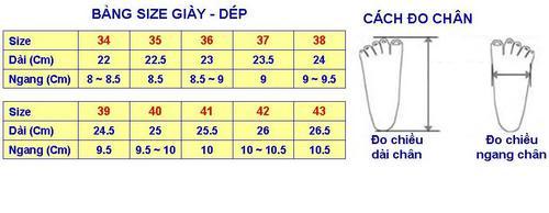 Lưu ý: Size giày trên chỉ mang tính tương đối.