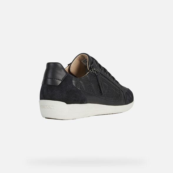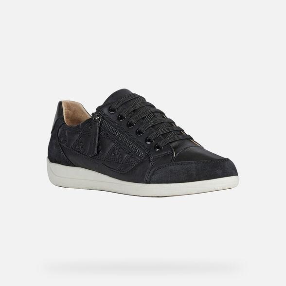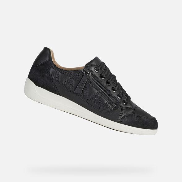 Kiểu dáng: Giày sneaker Myria nữ thoáng khí kết hợp cấu trúc nhẹ, linh hoạt và bền bỉ với độ bám vượt trội; mang lại sự thoải mái tuyệt đối. Giày sneaker Myria được chế tác từ da lộn màu đen có các chi tiết trang trí tông màu vàng và một dây kéo bên hông giúp dễ dàng khi mang và tháo giày.