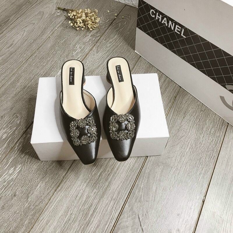 Giới thiệu Giày sục da mịn gót trụ tròn nơ đá vuông - 3P