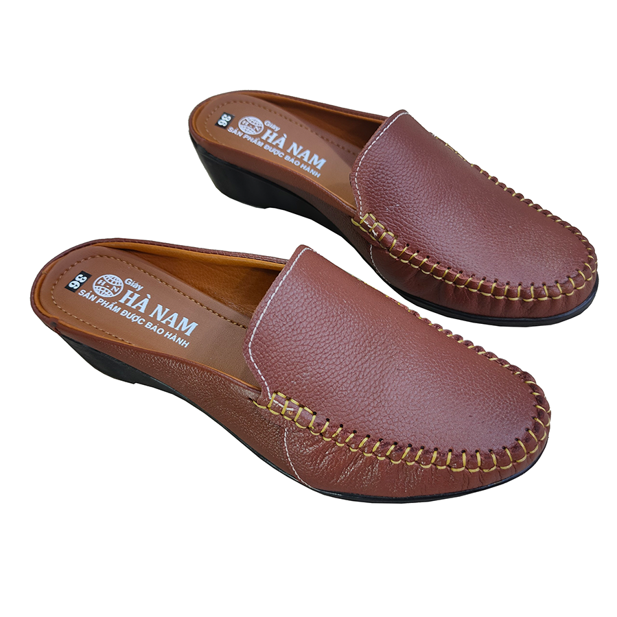 Giày sục nữ đế xuồng 4cm HÀ NAM da bò thật cao cấp DNU2169