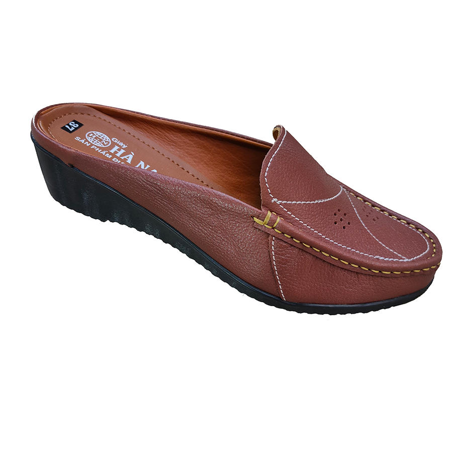 Giày sục nữ đế xuồng 4cm HÀ NAM da bò thật cao cấp DNU2171