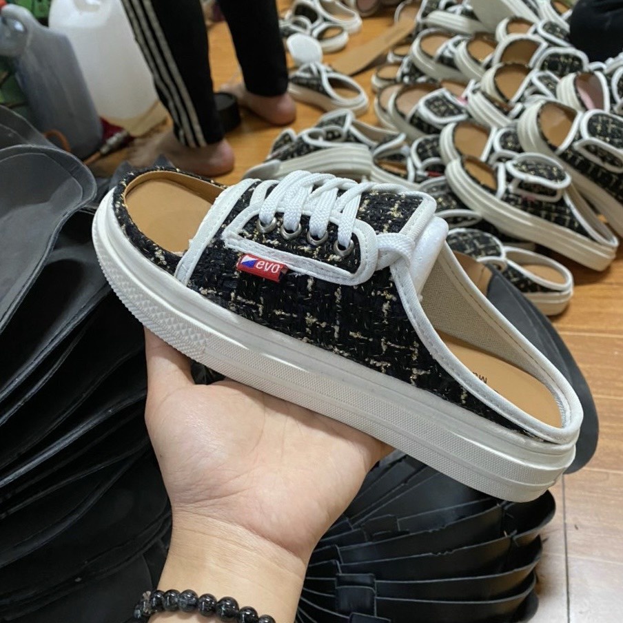 Giới thiệu Giày sục nữ hở mũi vải dạ đen xu hướng mới
