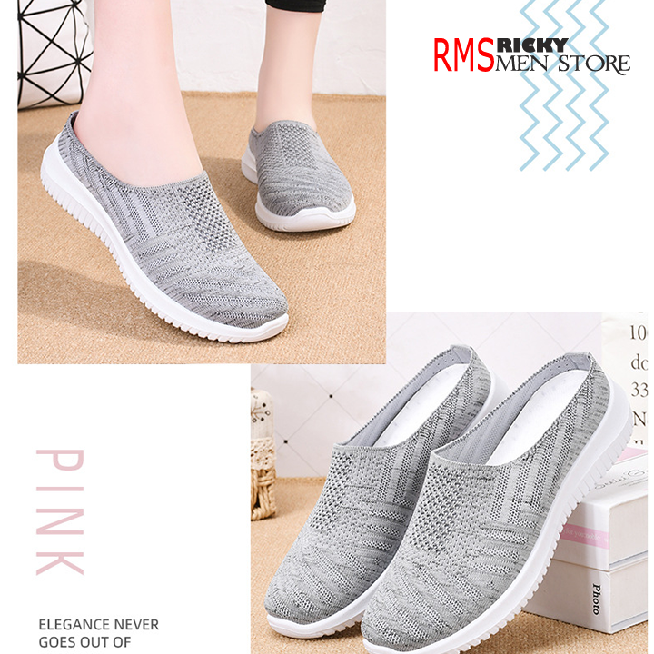 Giày sục nữ vải lưới thoáng khí mùa hè - giày lười nữ thiếu gót siêu nhẹ