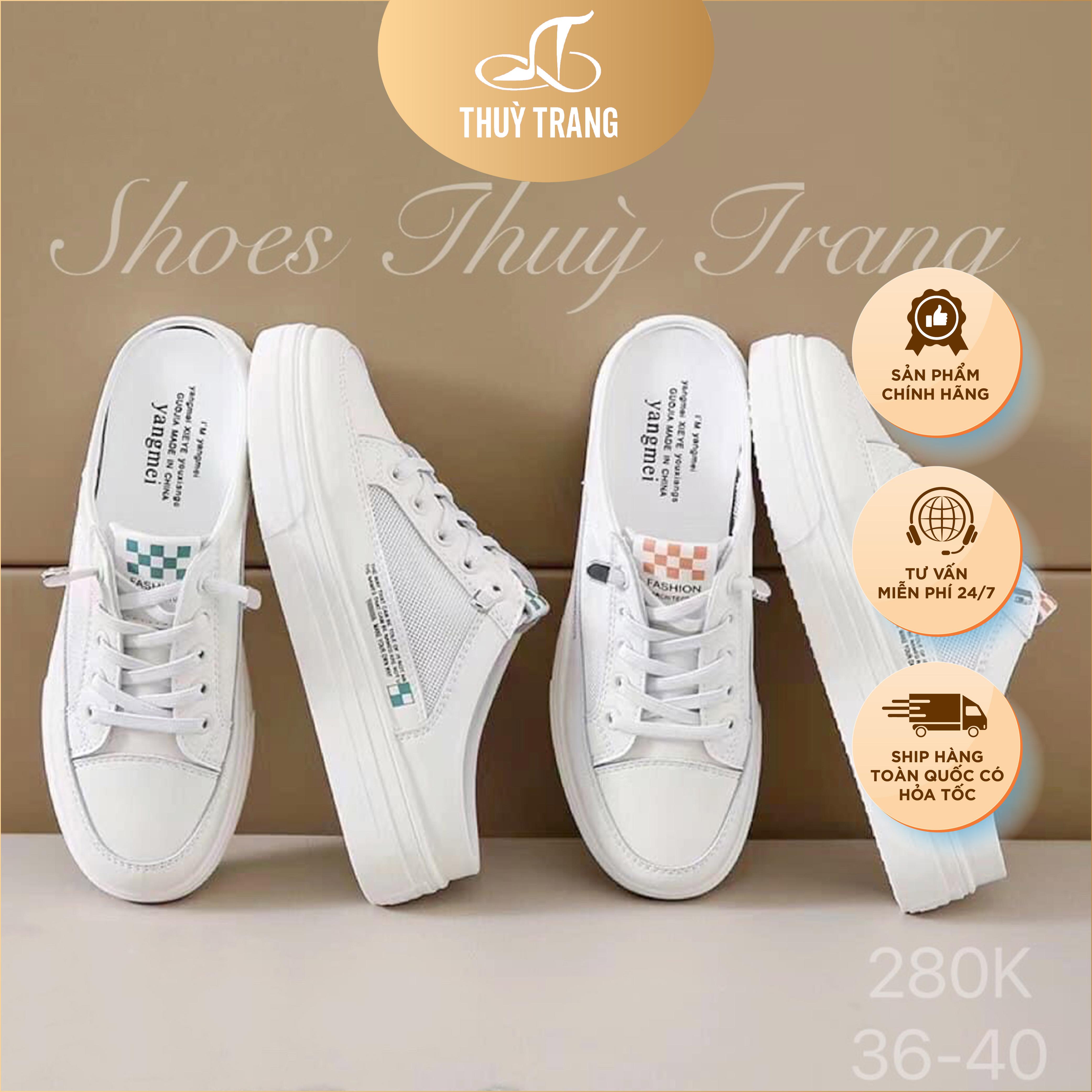 - Tên sản phẩm: Giày Sục Thể Thao Nữ Phối Chữ và Caro, Đan Dây, Đế Bánh Mì