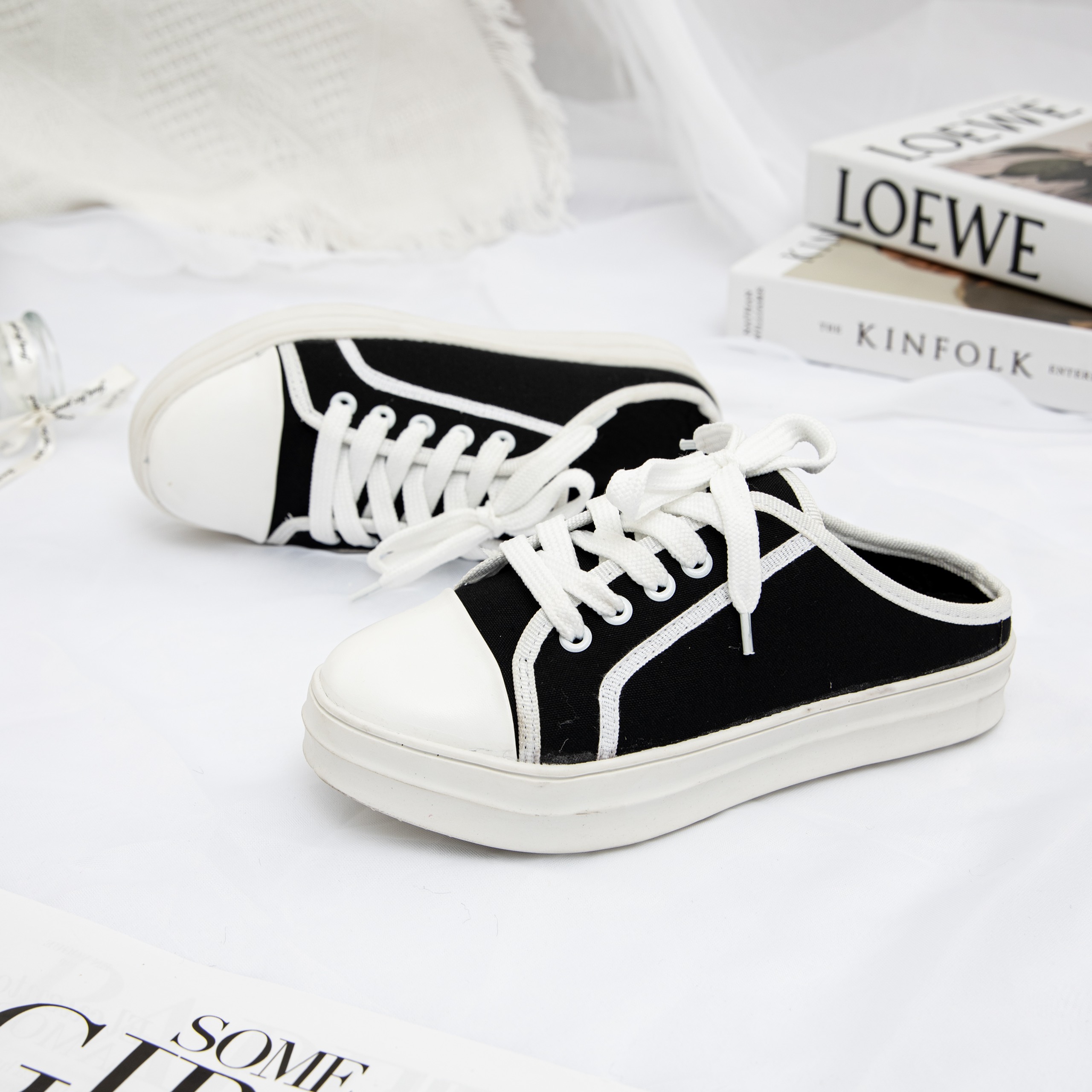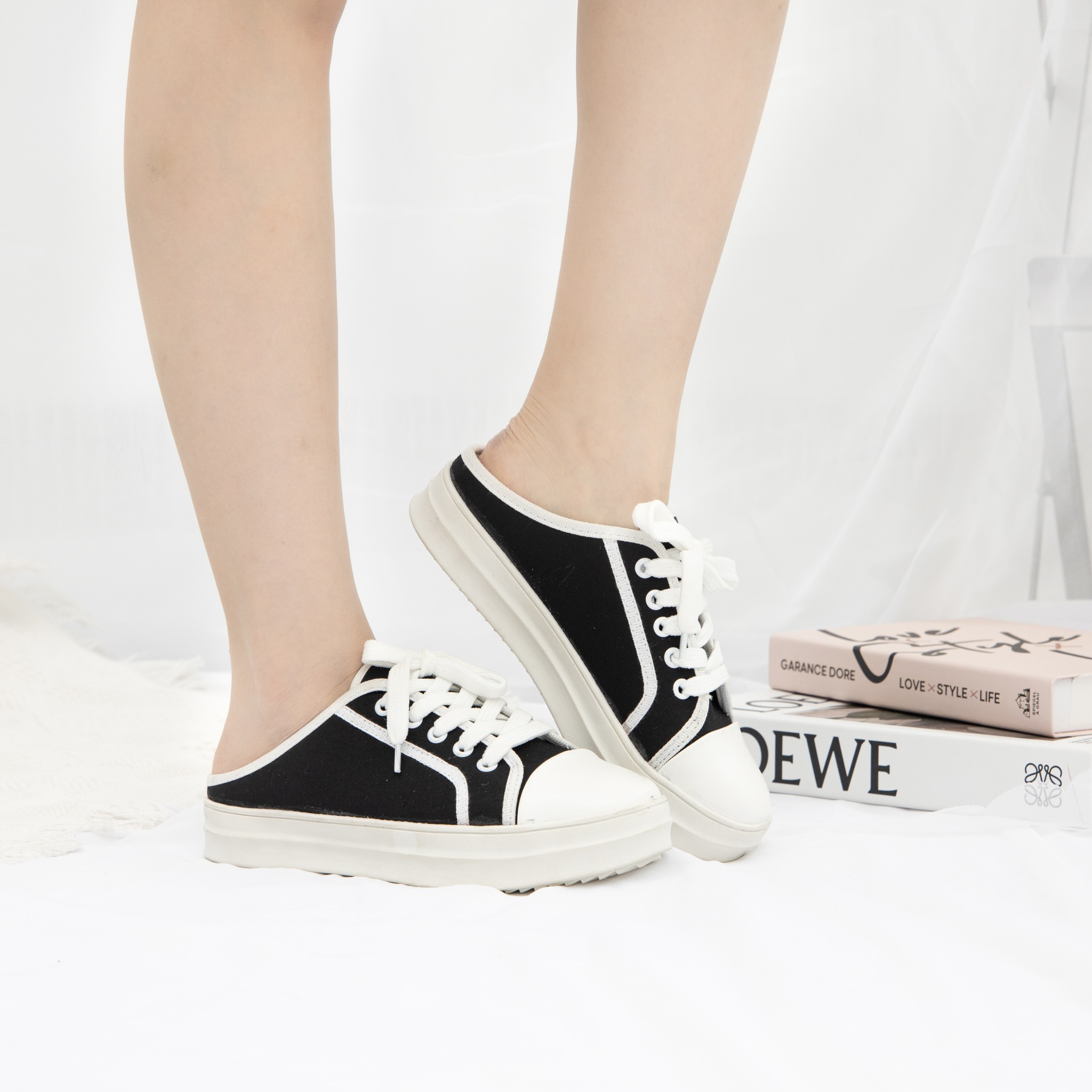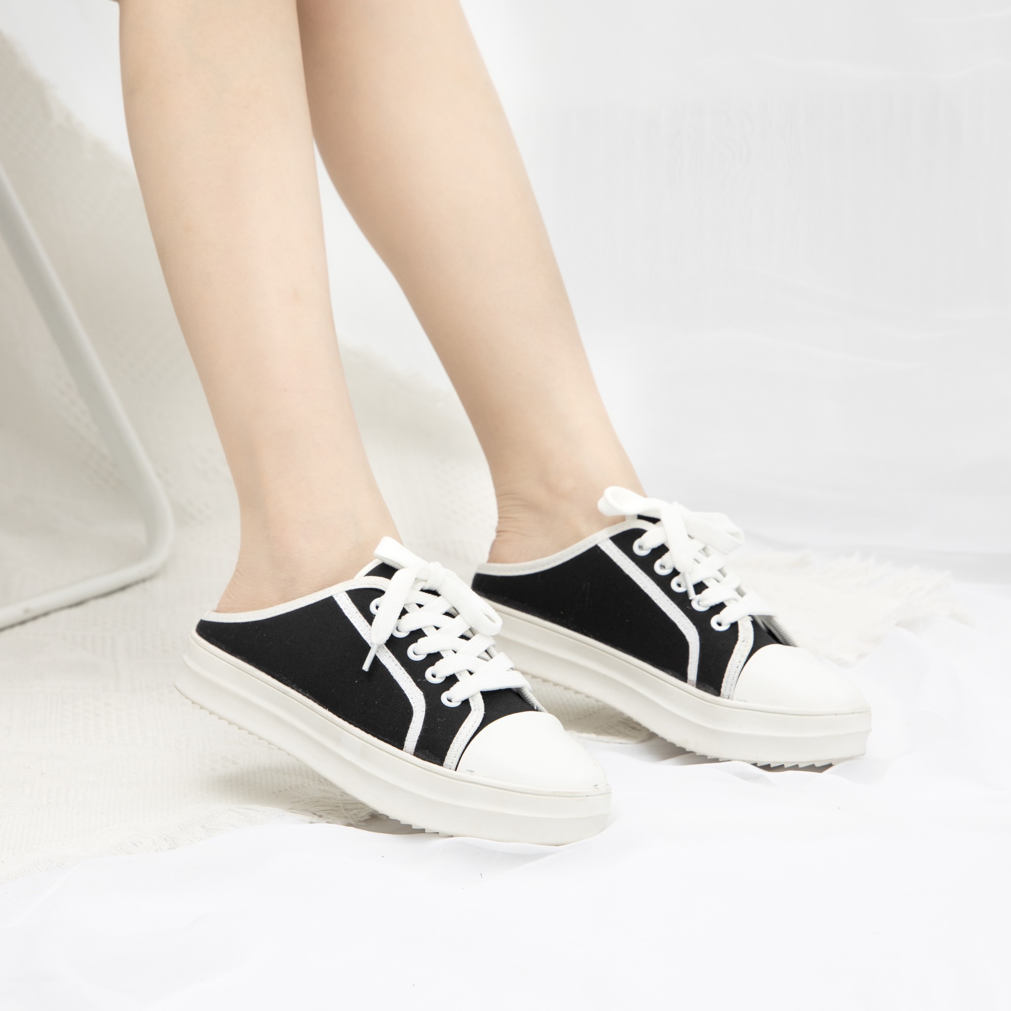 1. GIÀY SỤC THỂ THAO VẢI ĐẾ BÁNH MÌ 3CM: Mẫu sục thể thao vải này được thiết kế kiểu dáng buộc dây sneaker cực ngầu, trẻ trung, năng động cùng chất liệu vải canvas mềm cao cấp đi rất êm chân, mang thoải mái đi lại cả ngày, có tính năng thoáng khí, giúp cân bằng nhiệt và độ ẩm trong những điều kiện môi trường khác nhau.