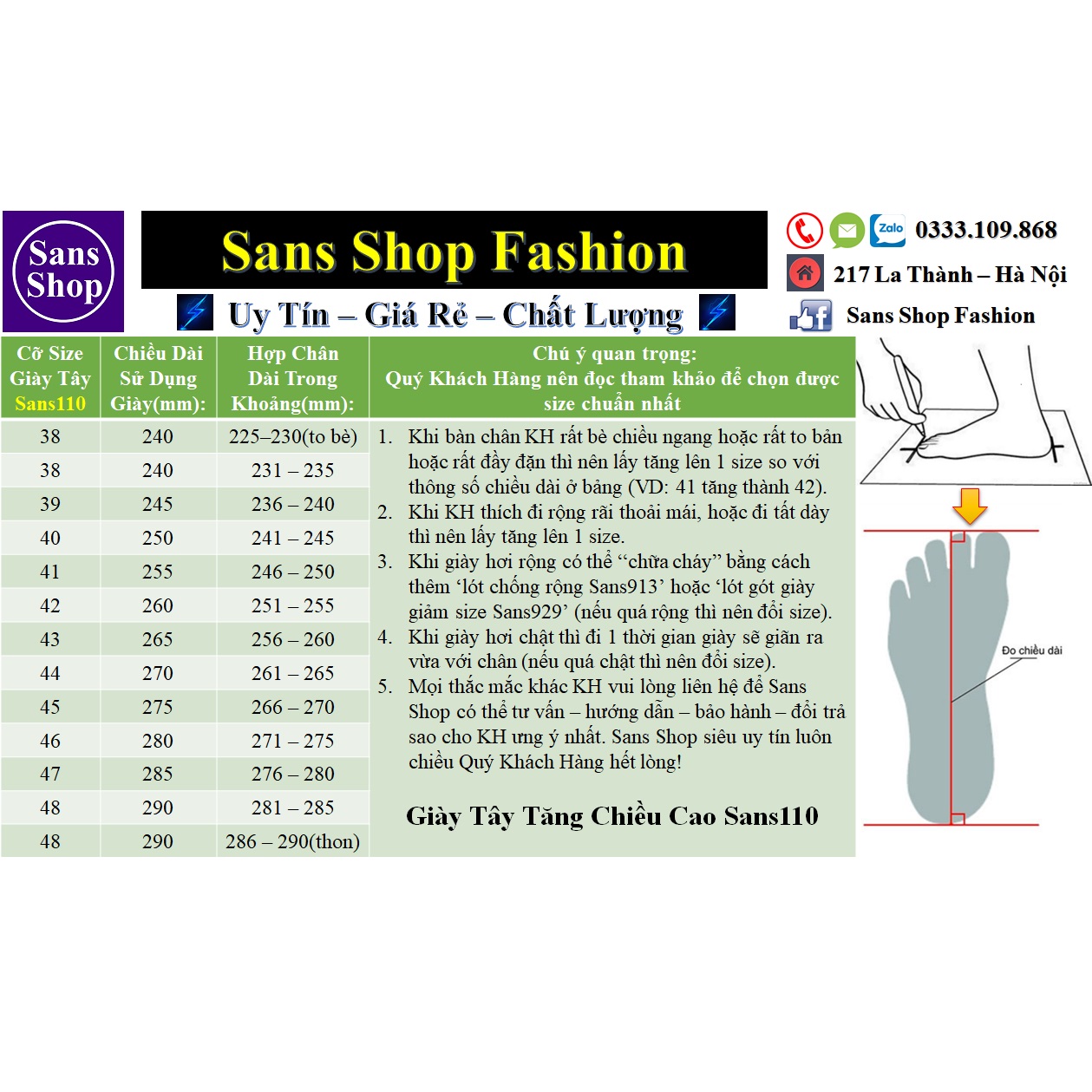 KH muốn giay tây nam tăng chiều cao hơn thì nên dùng lót giày Sans920 Sans921