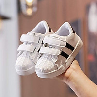 Giày Bata Thể Thao Hai Sọc Quai Dán Đáng Yêu Cho Bé Trai, Bé Gái Từ 1 Đến 6 Tuổi (Trắng