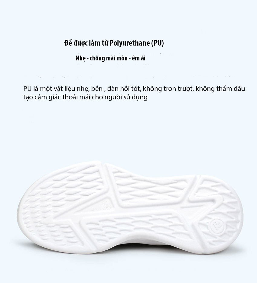 ️Ngoài ra đế PU của giày rất nhẹ và mang lại cảm giác thoải mái khi đi. Chất liệu polyurethane nhẹ bền , chống trơn trượt và không thấm dầu .