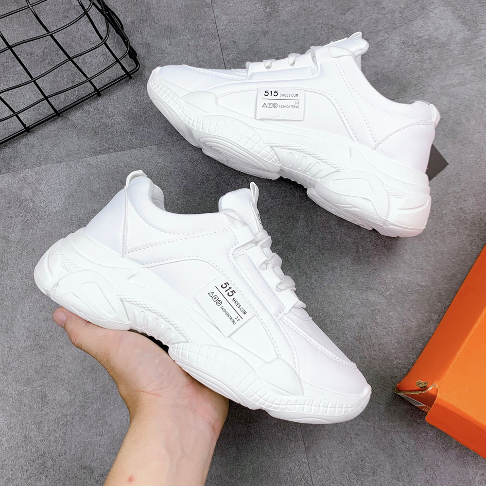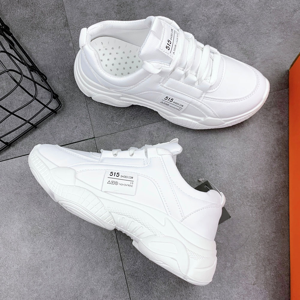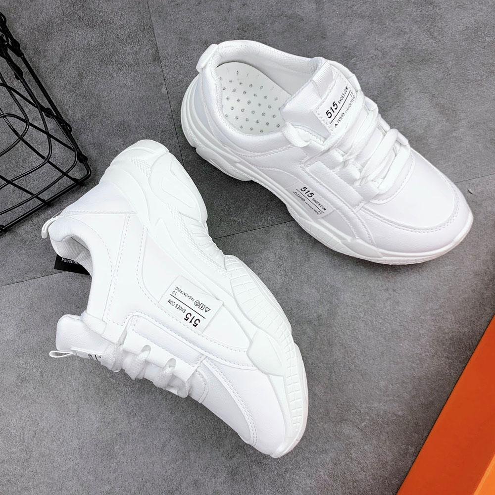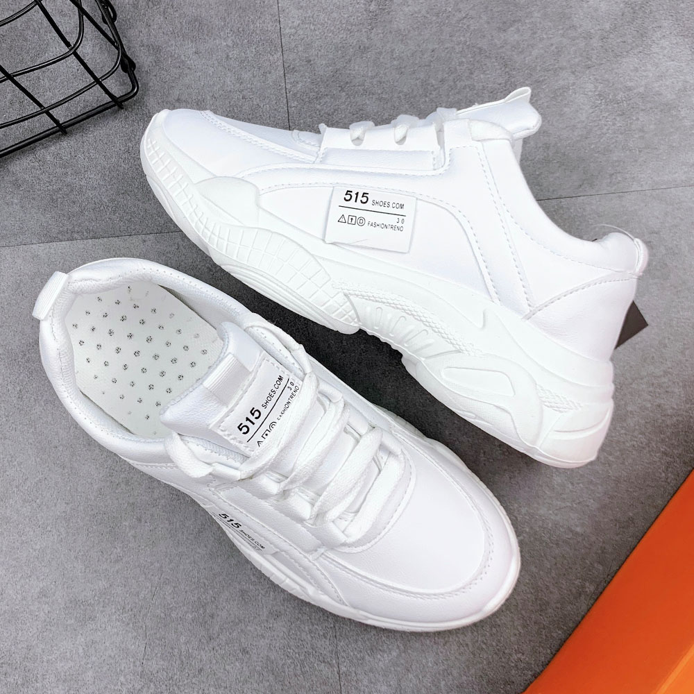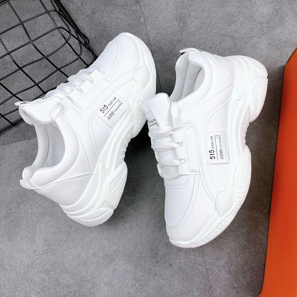 Giày Thể Thao Nữ Màu Trắng Bằng Da Không Bong Tróc Cao 4cm Đế Êm Nhẹ S352