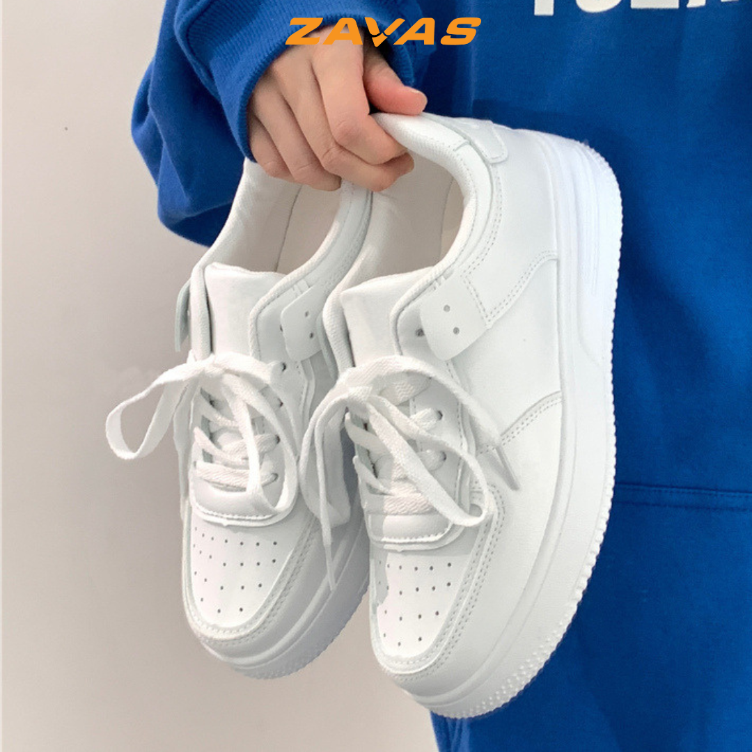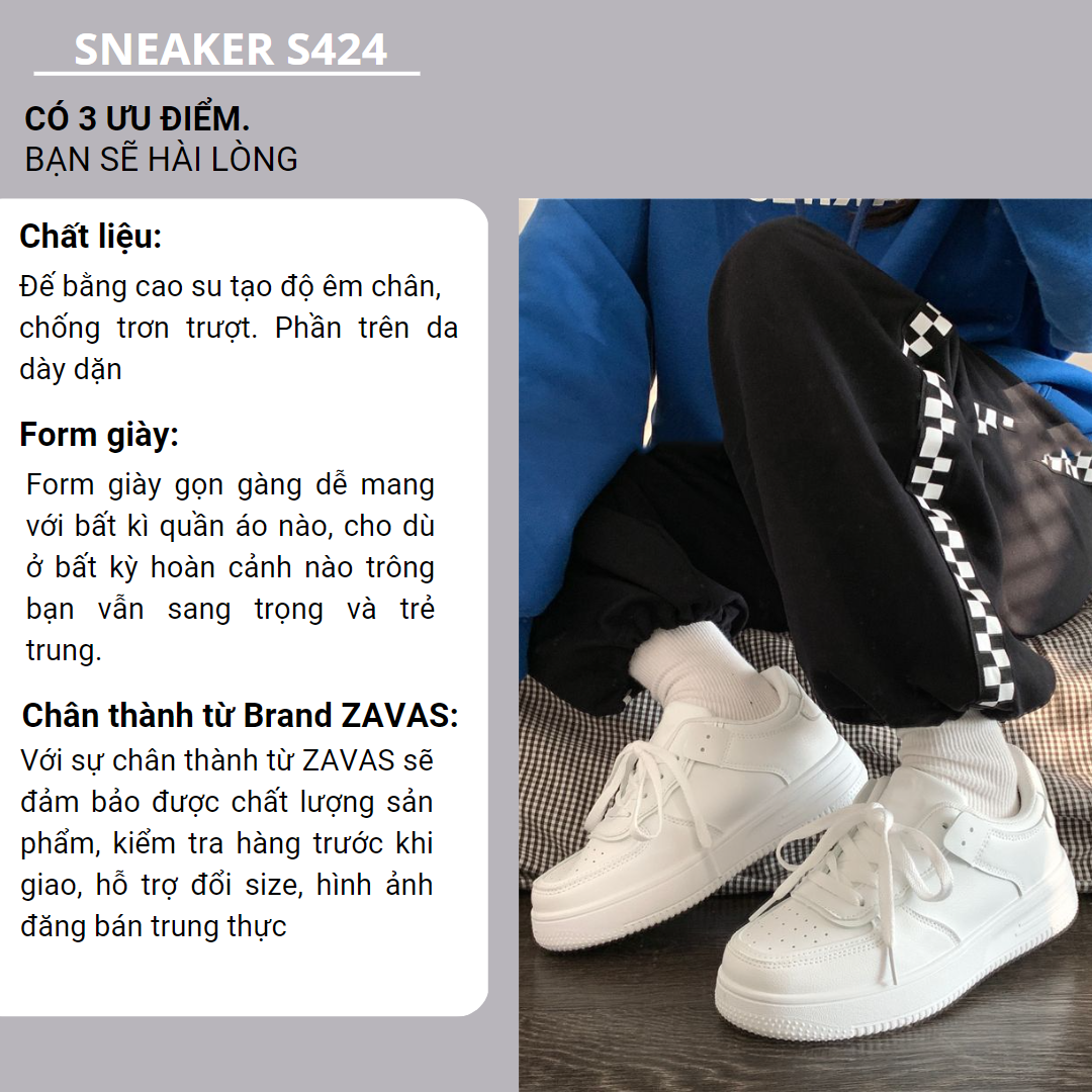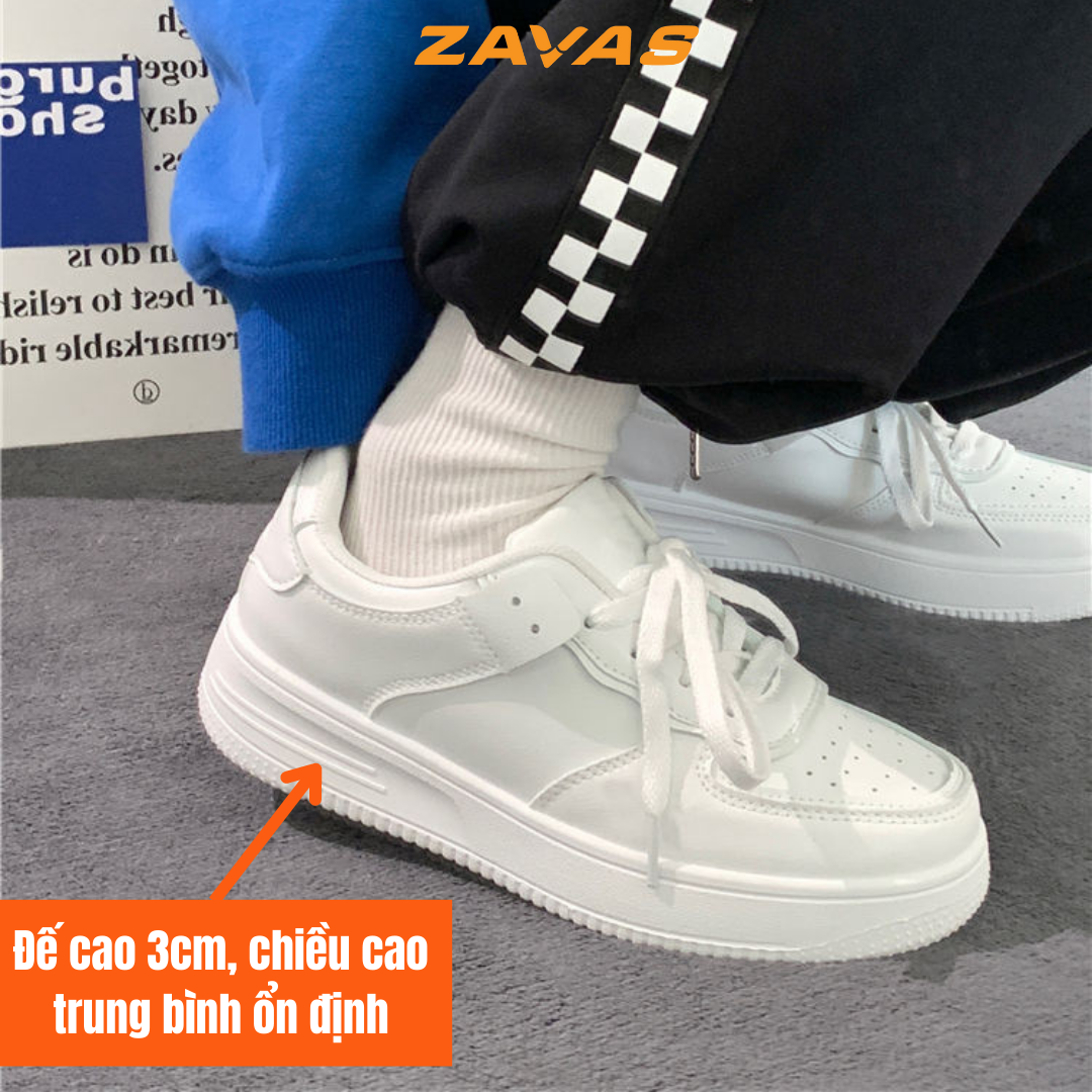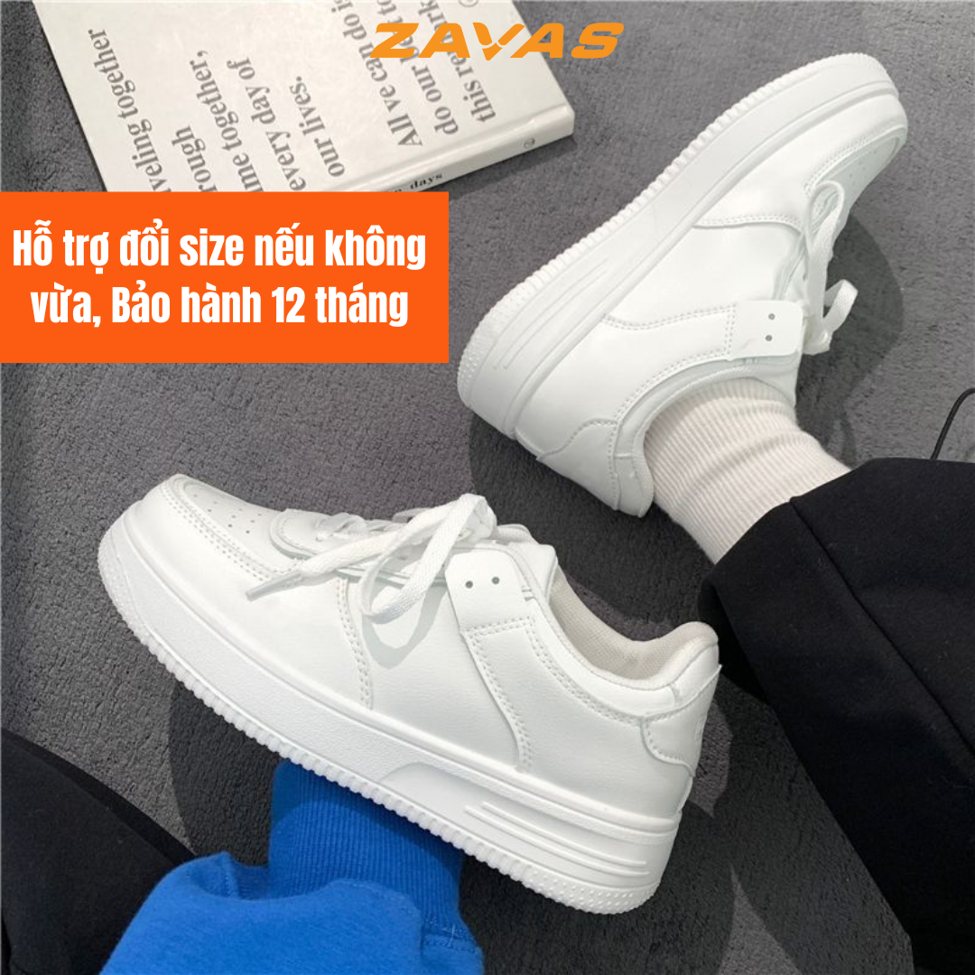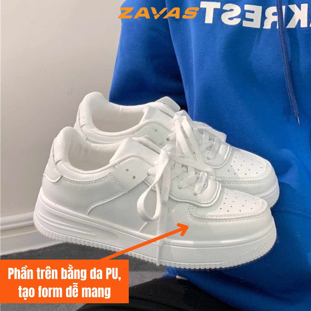 Giới thiệu Giày thể thao sneaker nữ ZAVAS đế cao 3cm màu trắng bằng da mang êm chân thời trang cá tính - S424