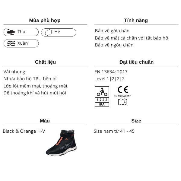 Giày bảo hộ LS2 Acrux Man đạt tiêu chuẩn châu Âu EN 13634: 2017, Level 1|2|2|2.