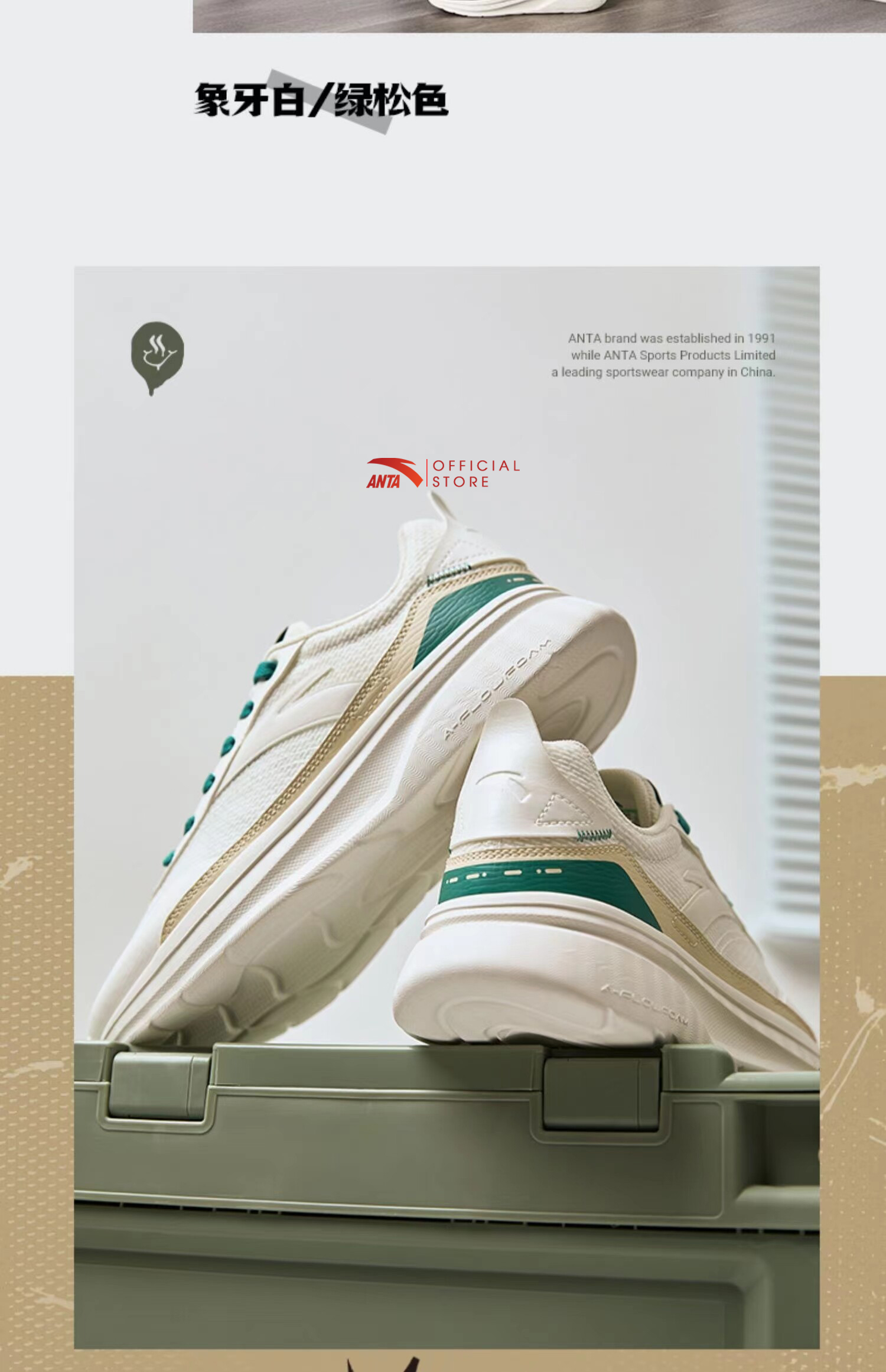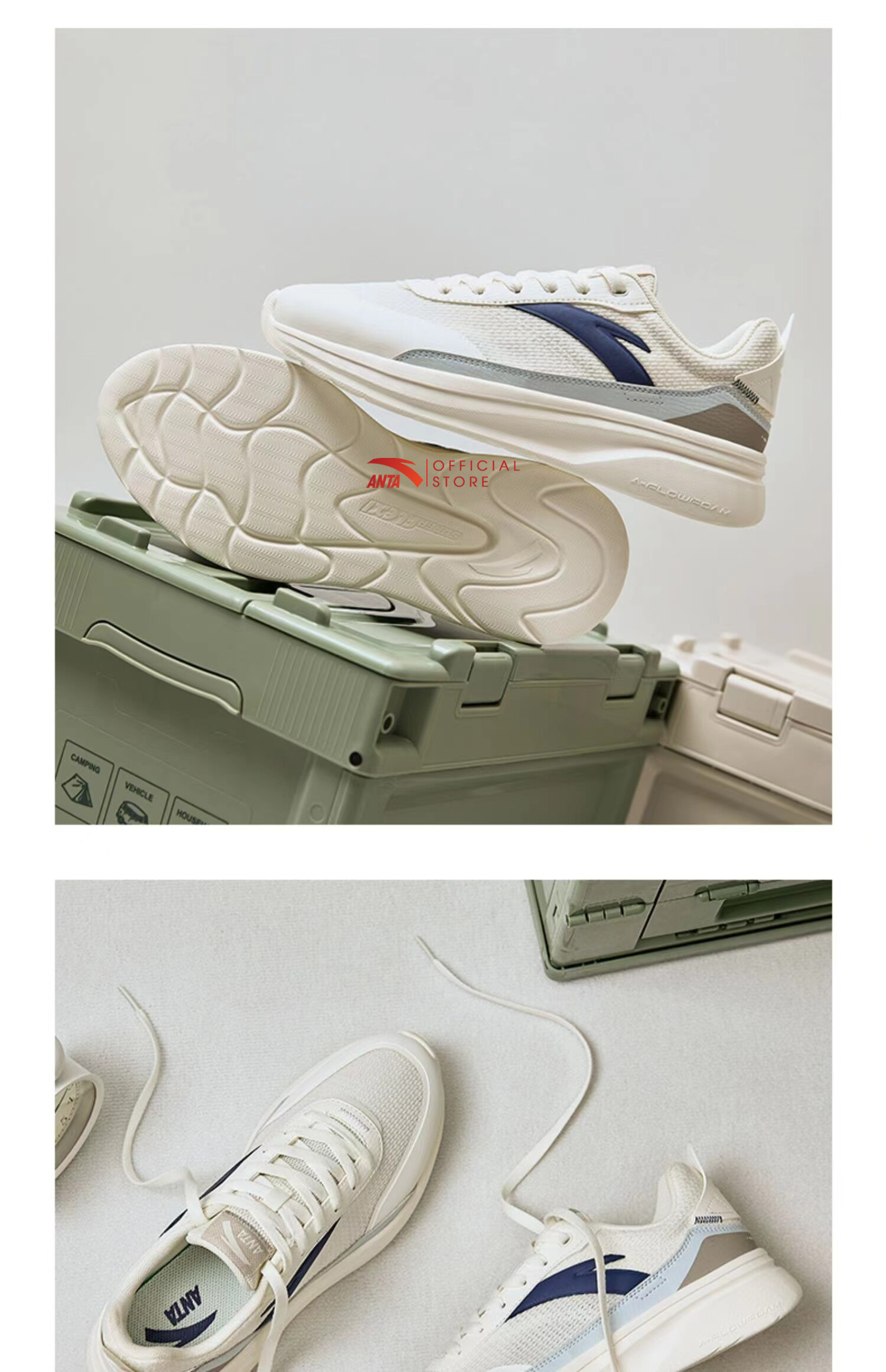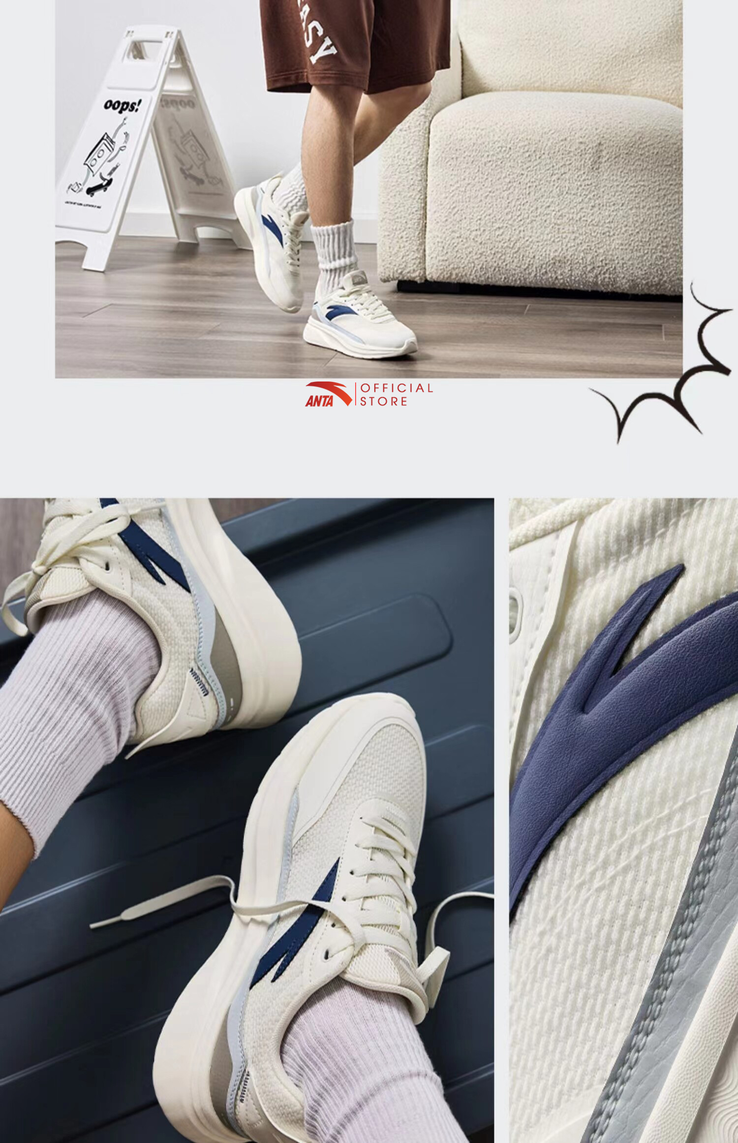 - Đồng hành cùng thiết kế thời trang, giày thể thao Anta mang tính năng thoáng khí, giúp cân bằng nhiệt và độ ẩm trong những điều kiện môi trường khác nhau, đế có các đường rãnh chống trơn trượt.