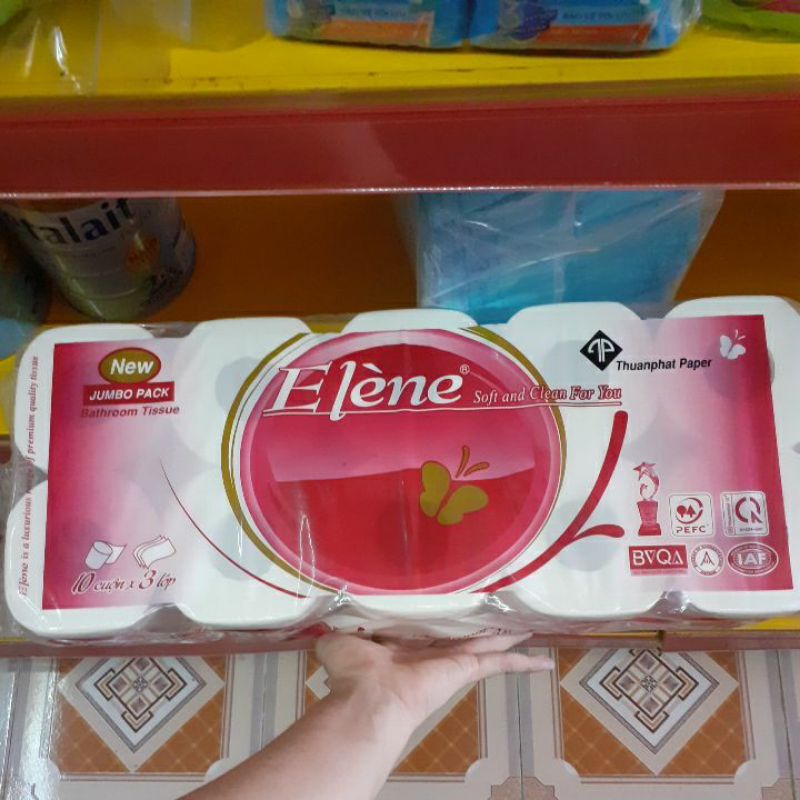 Nhà cửa & Đời sống > Dụng cụ chăm sóc nhà cửa > Giấy vệ sinh || giấy vệ sinh cao cấp Elene không lõi 3 lớp ( bịch 10 cuộn )
