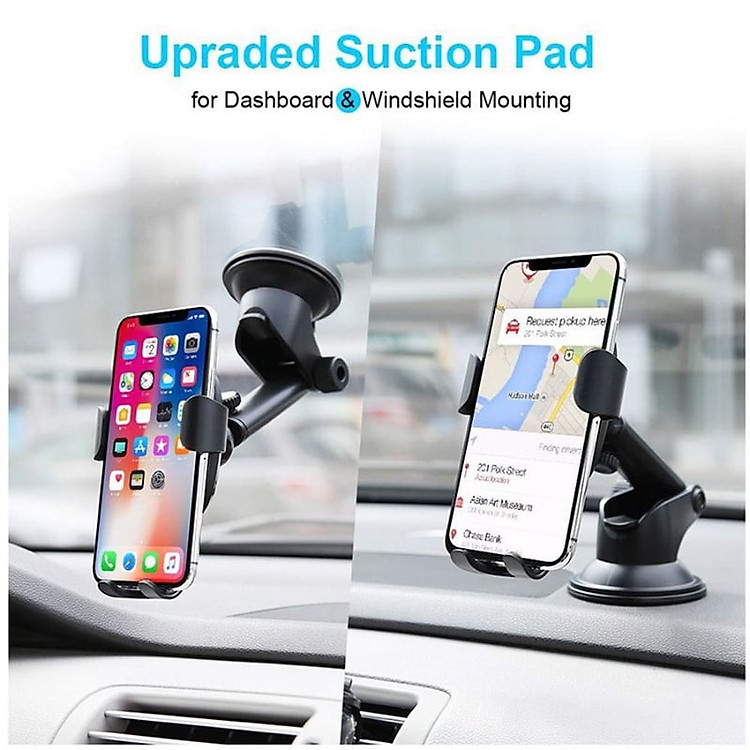 - Đế giá đỡ được thiết kế dạng chuck (hút chân không) giúp dễ dàng bám chắc vào bề mặt táp lô xe hoặc kính. Khi không sử dụng có thể tháo ra dễ dàng, không làm dơ bẩn xe.