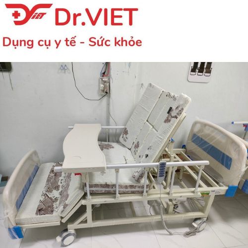 - Có thể gội đầu tại giường: Giường có trang bị bàn ăn, gác lên hai thanh chắn của giường để bệnh nhân có thể ăn uống sinh hoạt tại giường, bàn có thể dùng để đựng thức ăn, sách báo, điều khiển tivi,