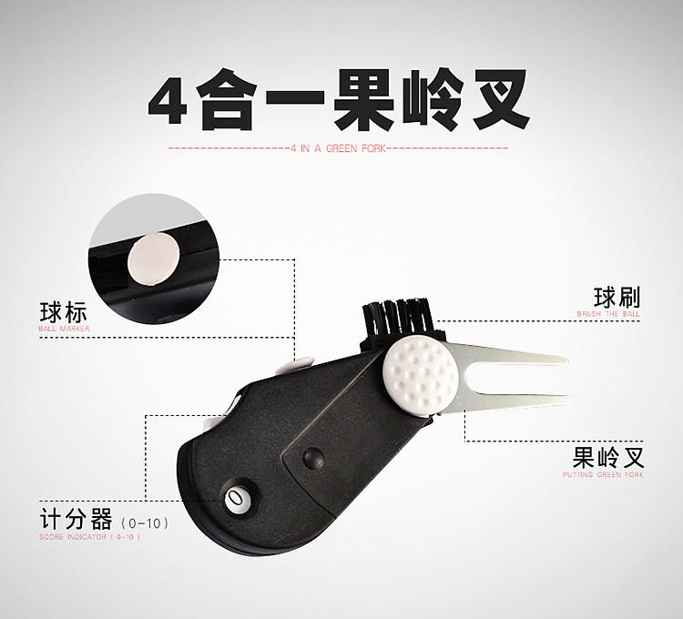 - Dụng cụ tích hợp đủ 4 tính năng trong một sản phẩm : cào đất, thiết bị tính điểm, bàn chải bóng và đánh dấu bóng.